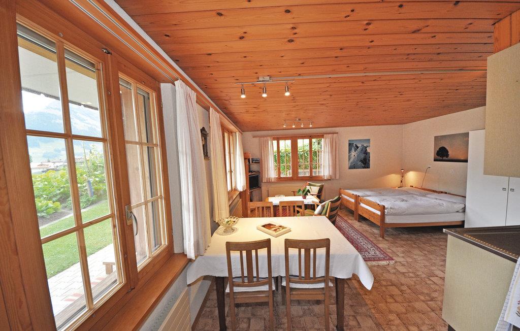 Nebst üblicher Ausstattung hat sie 1 SAT-TV, CD, Kaffeemaschine, Waschmaschine und Trockner sowie im Freien 4 Gartenstühle, Gartentisch, 2 Liegestühle, einen Garten und auch einen PW Parkplatz (keine Wohnmobile/Camper). Geographisch liegt der typische Berner-Oberländer Ort in der Mitte zwischen Spiez, Kandersteg und Adelboden. In Frutigen haben Sie eine gute Infrastruktur. Auch die Anfahrtswege zu den zahlreichen Sehenswürdigkeiten in der Umgebung sind nah.