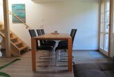 Wohnraum mit yallo TV / Radio, WLAN Zugang im ganzen Haus, Essecke für sechs Personen.
