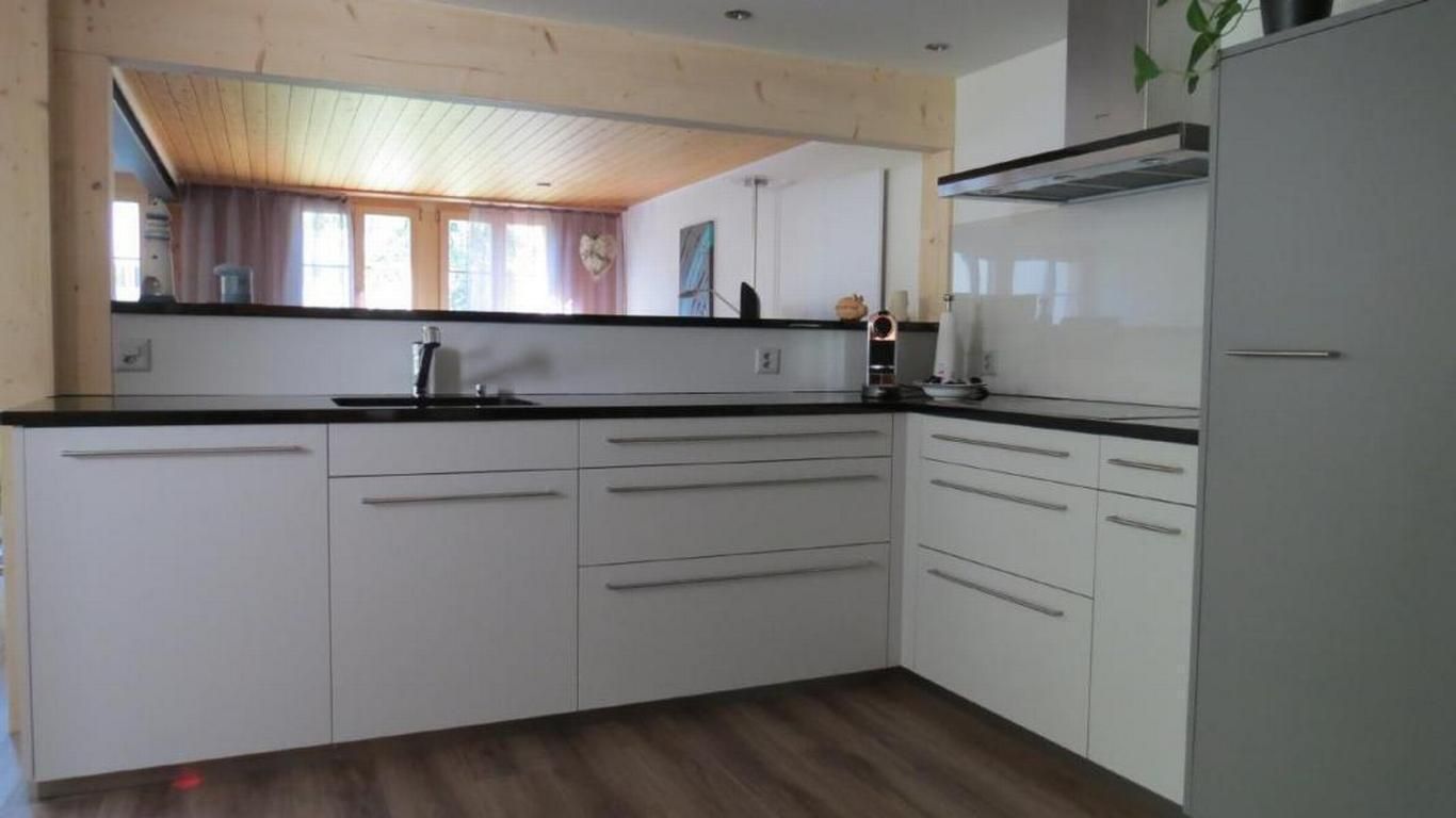 Küche mit Backofen, Kühlschrank mit Gefrierfach, Geschirrspüler, Nespresso-Kaffeemaschine, Fondue-sowie Raclette Ofen für 6 Personen.