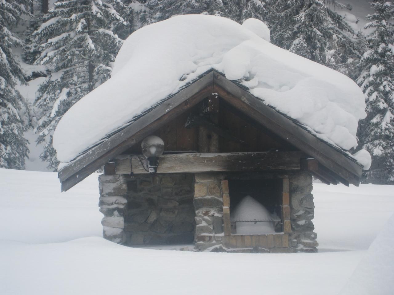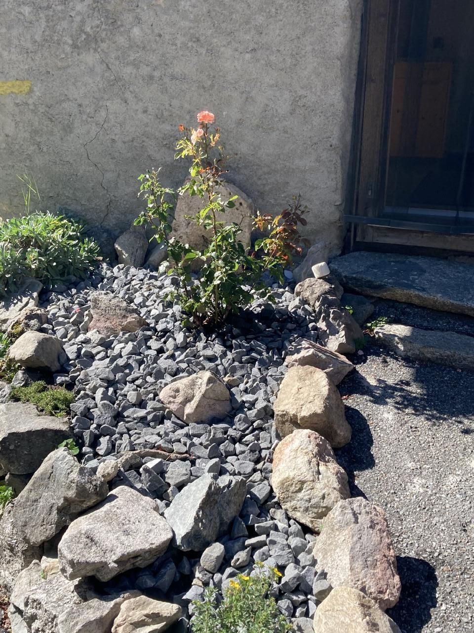 500 m2 Außenfläche stehen zur Verfügung um 5-6 Autos (3 im Winter) zu parkieren und ebenso hat es Barbecue, Esstisch, Sonnenschirmen und viele Spiele.