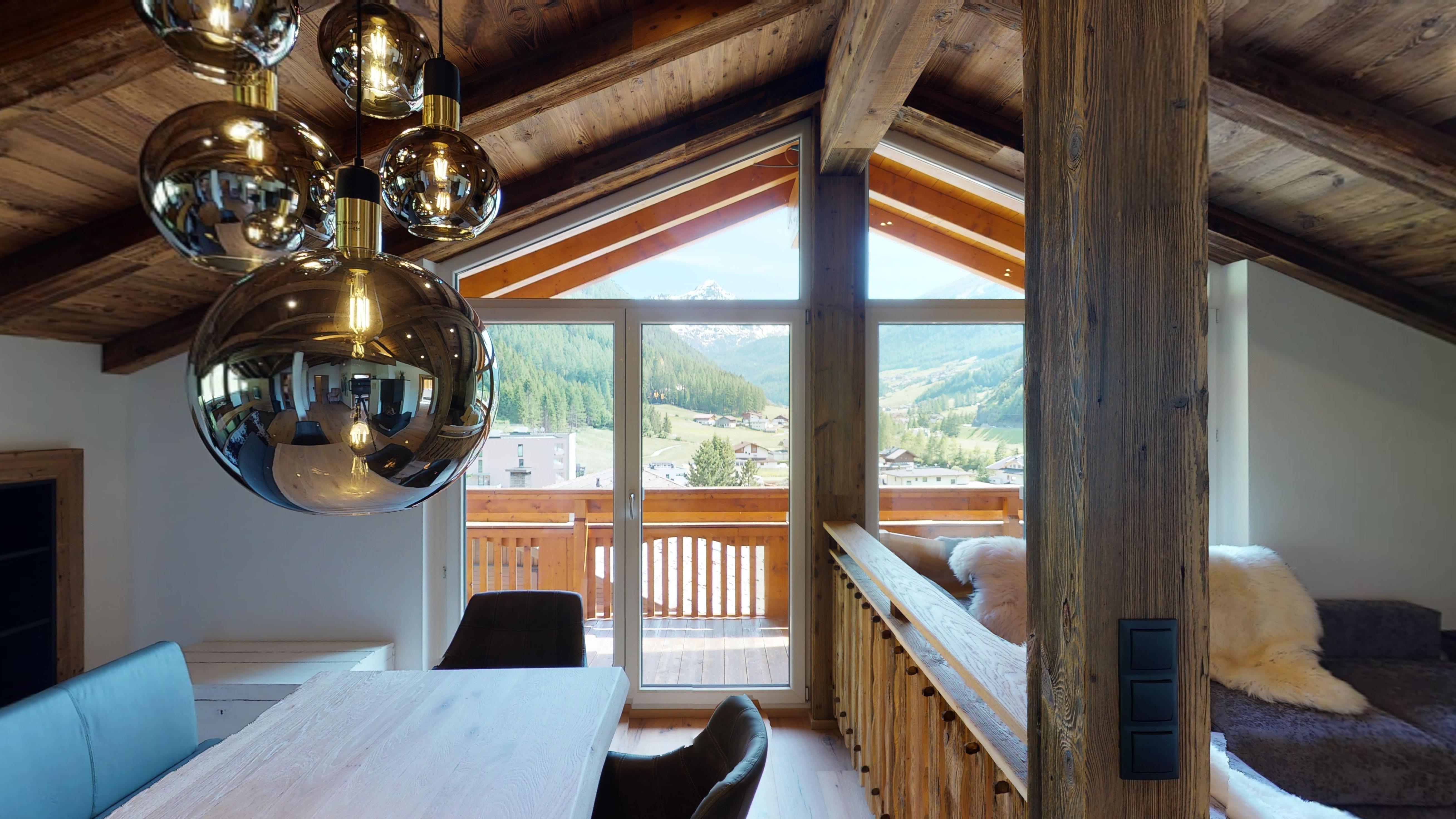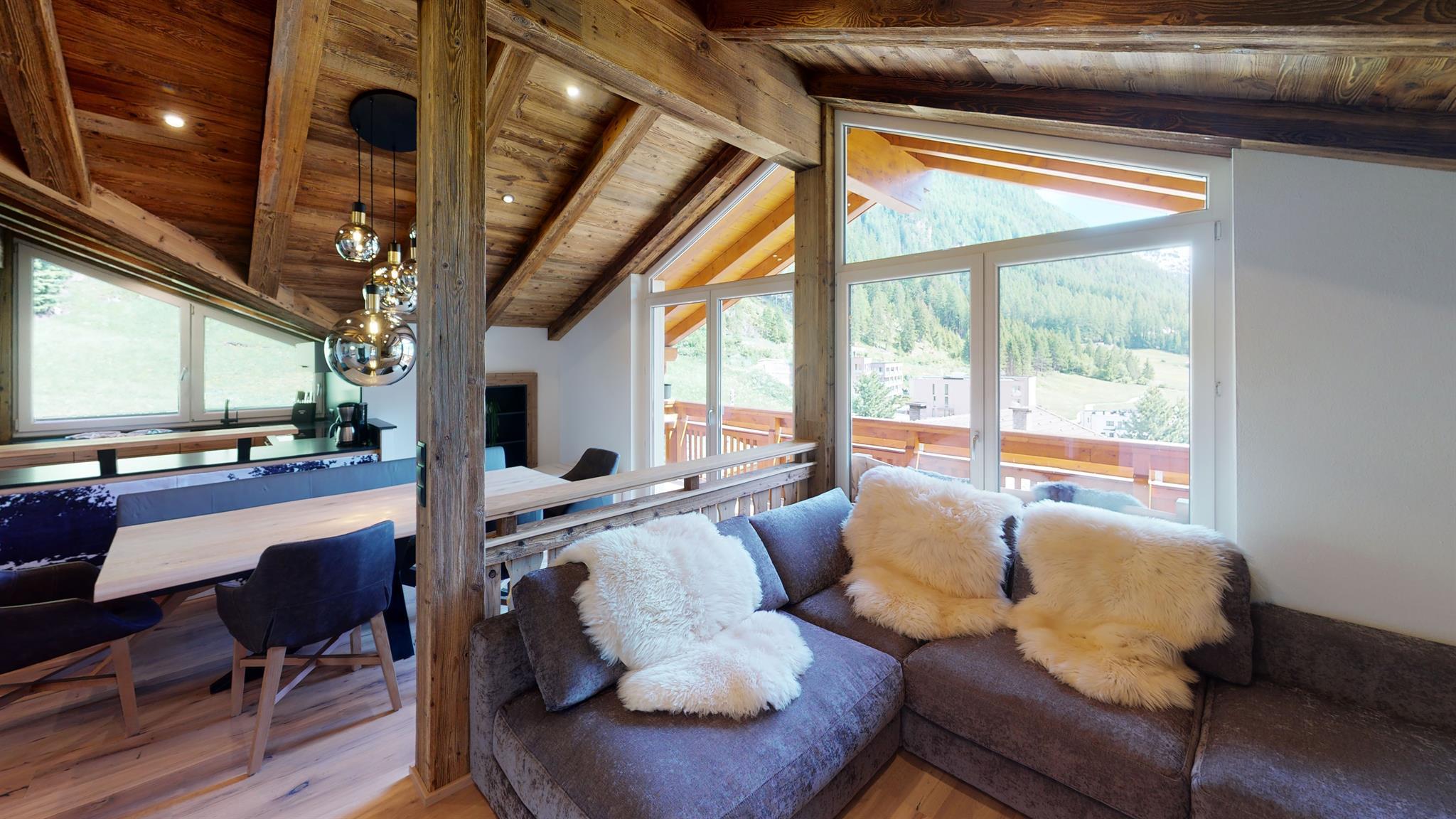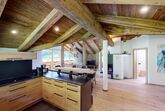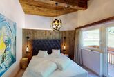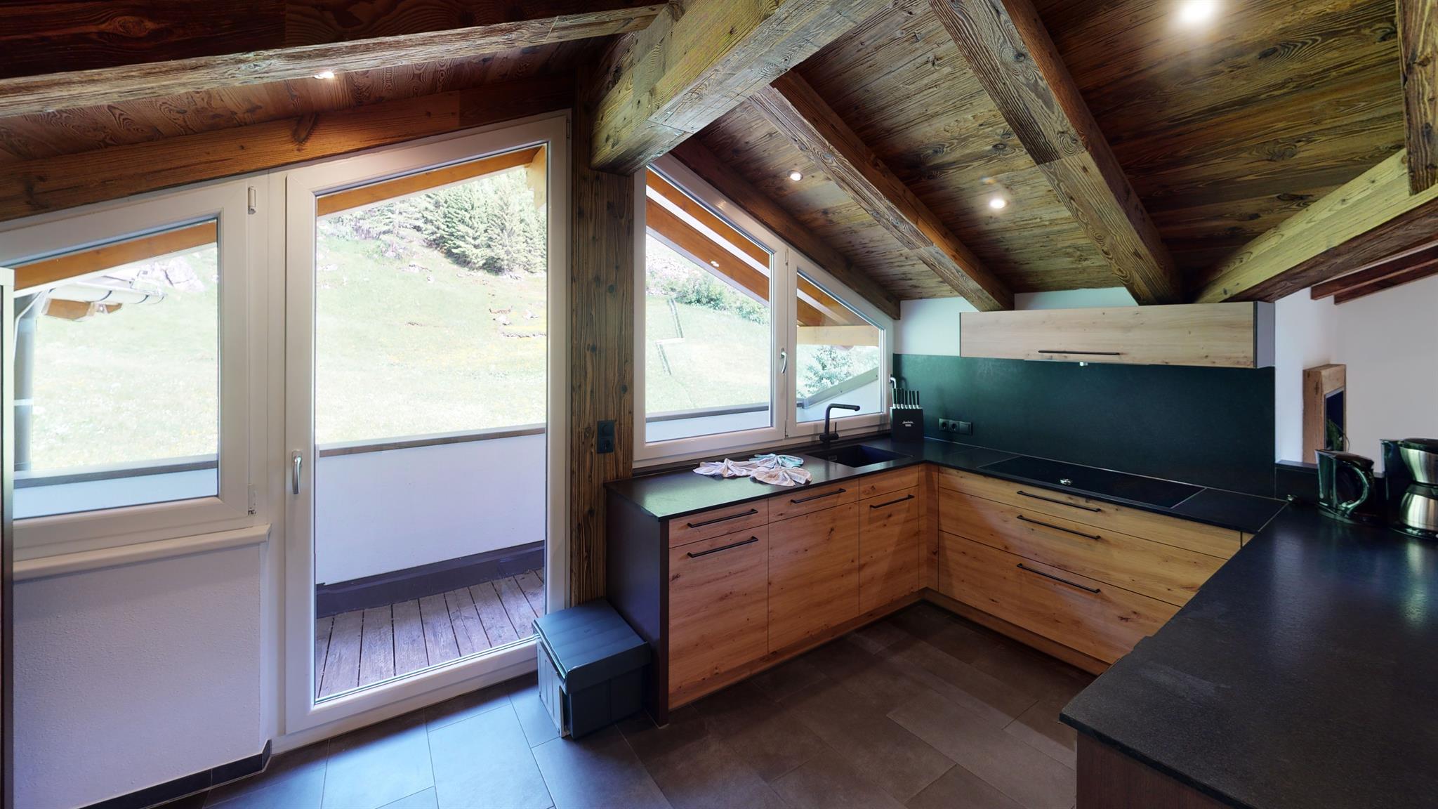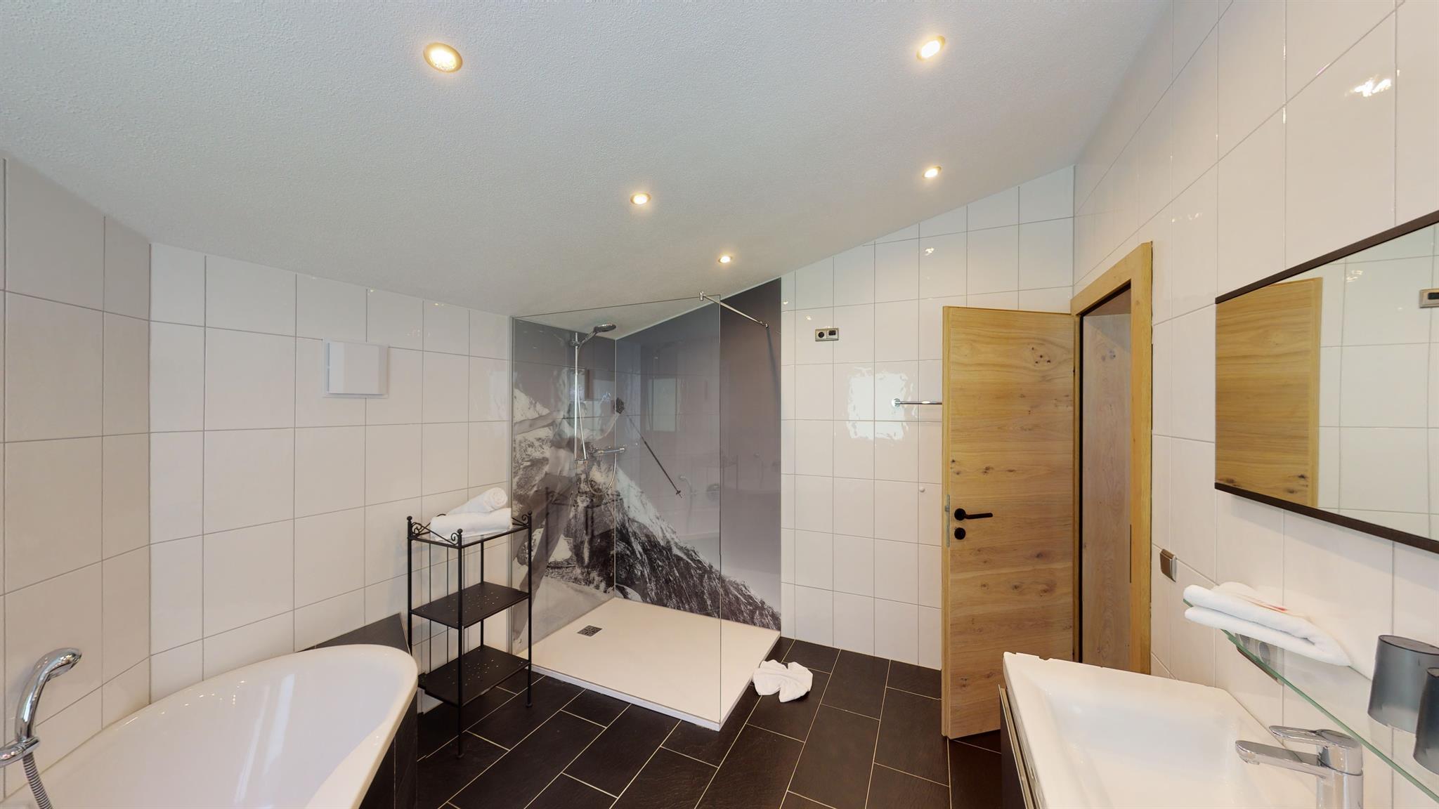 Appartement mit Sichtdachstuhl und ca. 120 m²: 2 Doppelzimmer, 1 Zweibettzimmer mit Stockbett, 1 Badezimmer mit Dampfdusche und Badewanne, 1 Badezimmer mit Dusche, 2 separate Toiletten, großes Wohnzimmer mit Esstisch und Sofalandschaft (ausziehbar für 2 Personen), Flat-TV, Designer-Küche mit Induktions-Herd und Mikrowelle, Geschirrspülmaschine, Kaffeemaschine, Garderobe, Süd-, Ost- und West-Balkon.