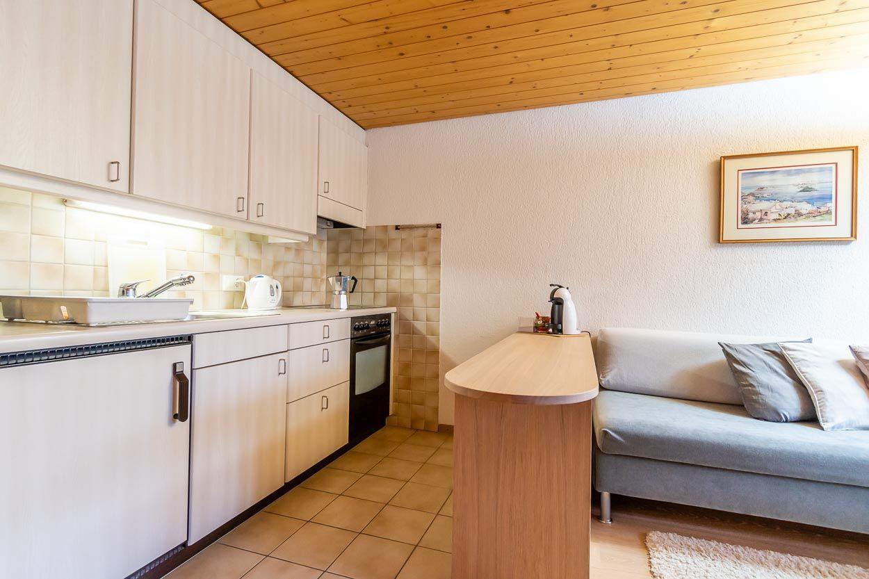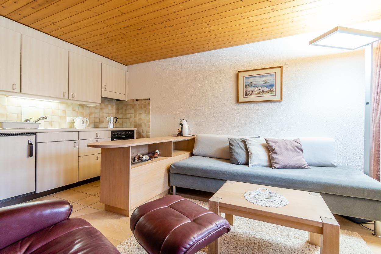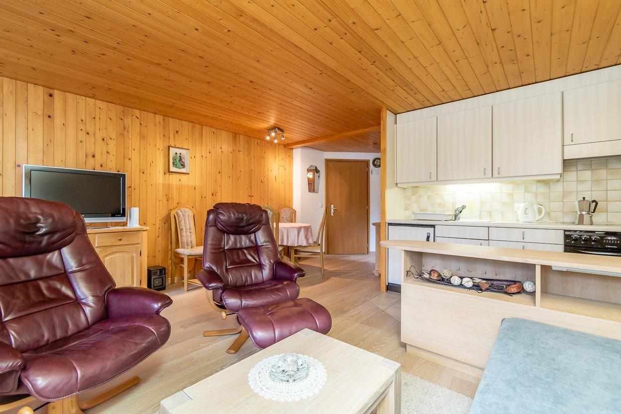 Wohn-/Esszimmer mit Esstisch, Bettsofa (80x200cm), 2 Sesseln, TV und offener Küche (u.a. ausgestattet mit Backofen, Kühlschrank mit Gefrierfach, Kapsel-Kaffeemaschine (Nespresso), Toaster, Wasserkocher sowie Raclette- und Fondue-Set). 1 Schlafzimmer mit 1 Doppelbett (2x90x200cm), TV und Einbauschrank. 1 Badezimmer mit Dusche und WC. WiFi.