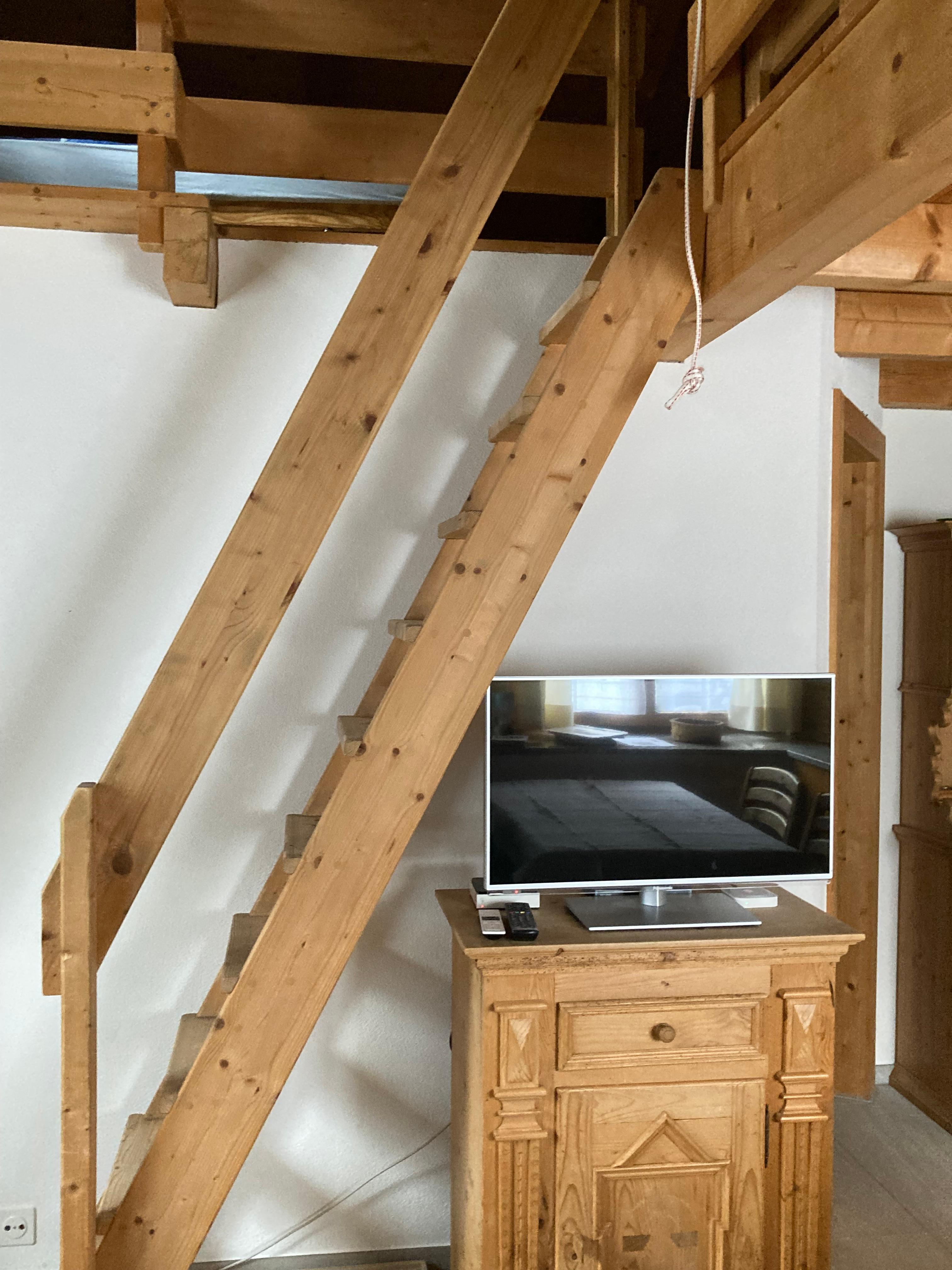 Gemütliche 2.5-Zimmer-Wohnung mit einer Galerie, Küche mit Geschirrspüler, 1 Bad/WC, 1 Doppelzimmer im Parterre. 1 Doppelbett, 1 Einzelbett und 1 Notbett in der Galerie.