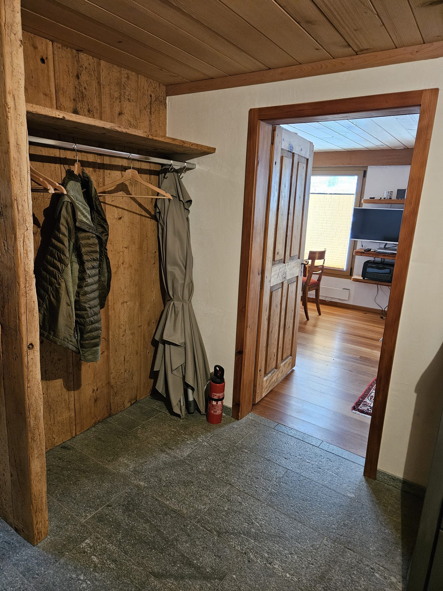 Studio im Erdgeschoss eines alten Stalles in den Steinen in Splügen. Nähe der Bergbahnen. Ruhige Lage, Parkplatz vor dem Haus.
