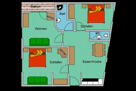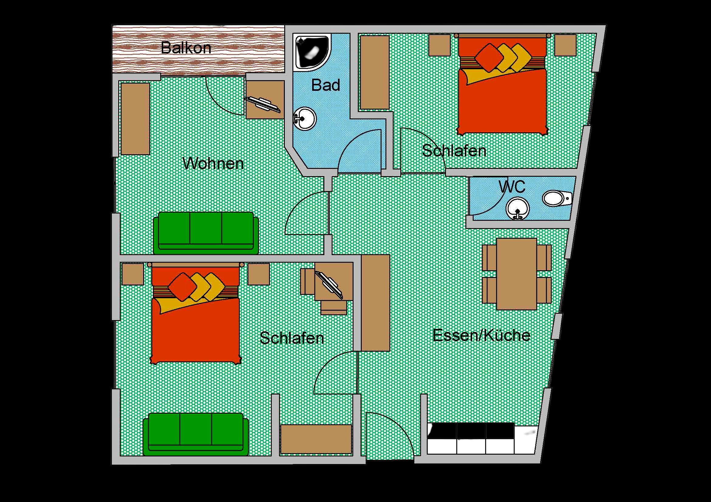 2 Doppelzimmer jeweils SAT-TV, Zusatzbett auf Schlafcouch möglich, Badezimmer, separtes WC, Haartrockner, Balkon mit Sicht nach Osten und Süden auf die Ötztaler Bergwelt, Wohnzimmer, Küche mit Backofen, Geschirrspüler, Glaskeramikherd mit 4 Platten, Kühlschrank (ohne Gefrierfach), Toaster, Wasserkocher, Mikrowelle, Kaffeemaschine, Esstisch, SAT-TV, Bettwäsche, Handtücher und Küchenwäsche.