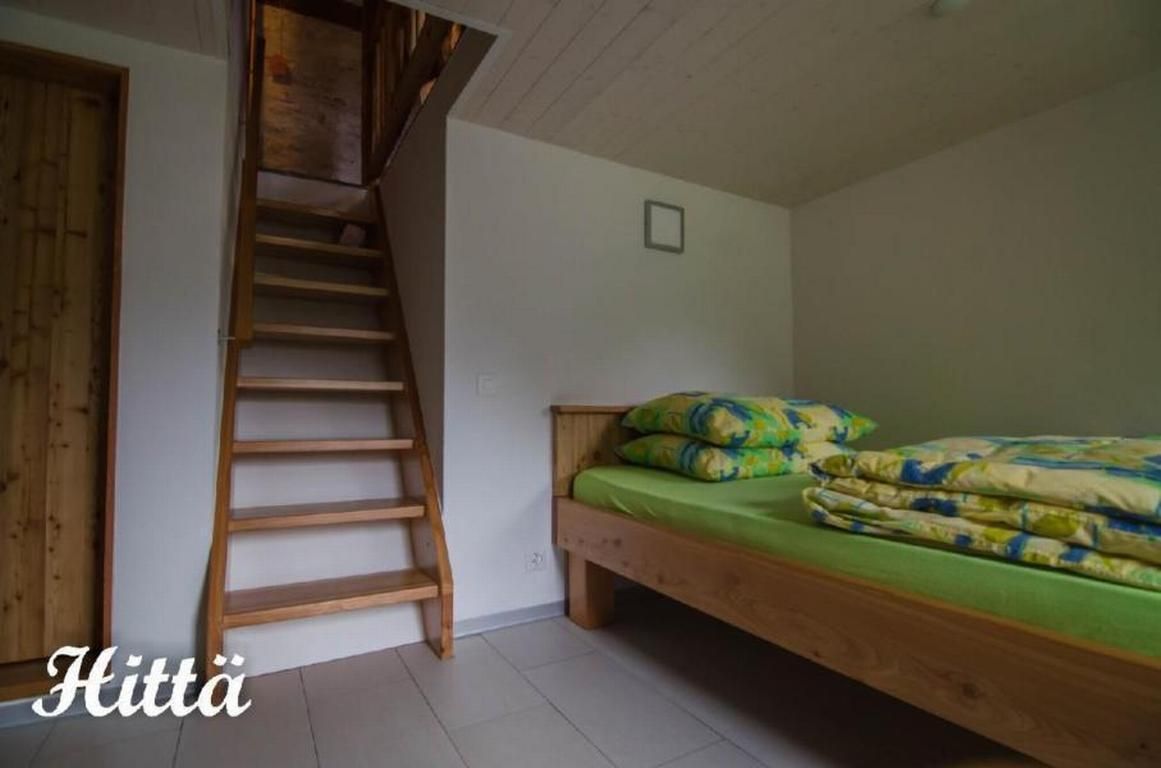 Sonstige Schlafzimmereinrichtung (Schlafzimmer1): Mit einer Treppe kann man in das neu ausgebaute Zimmer im Parterre gelangen Der Raum ist hell und mit einem Bett 140/200 und einem Holzofen eingerichtet. Von dort aus kann man in den Keller oder auch nach draussen gehen.Dieser Raum ist nicht abdunkelbar.