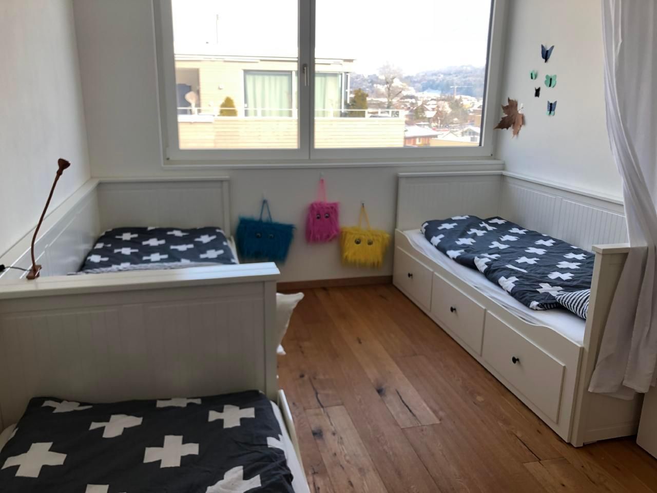 Das Penthouse eignet sich für 6 Erwachsene und 3 Kinder. Ein Schlafzimmer verfügt über drei Einzelbetten, welche nur für Kinder geeignet sind.