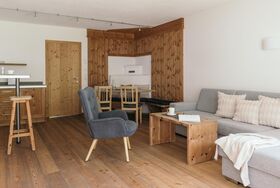 Ein Urlaubstraum auf 2 Etagen für 4 bis 5 Personen. Unten ein heimelig, gemütlicher Wohnraum mit Tiroler Kachelofen, Sitzecke und Küchenecke sowie 1 Schlafzimmer mit Dusche/WC, Internet-Anschluss, Sat-TV, Radio. Über eine Holztreppe gelangt man in die Wohngalerie sowie zum 2. Schlafzimmer. Das Apartment ist komplett ausgestattet: Bettwäsche, Handtücher, Koch- und Speisegeschirr.