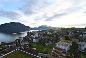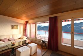 Appartment Alpenblick ist mit 4 Sternen klassifiziert. Die 2-Zimmerwohnung mit zirka 75 m2 Grundfläche liegt auf der dritten Etage mit prächtiger Panoramasicht auf See und Berge. Die Wohnung verfügt über einen grossen Balkon mit Gartenmöbeln. Appartement Alpenblick ist zentral gelegen ungefähr 100 Meter vom Seeentfernt. Einkaufsmöglichkeiten, Bushaltestelle, Bankomat finden Sie zirka 50 Meter vom Haus entfernt. Im Haus finden Sie ein Restaurant. Für Gäste mit einem Motorfahrzeug steht ein Garagenplatz in der Einstellhalle zum Preis von Fr. 7.- pro Nacht zur Verfügung. Für Gäste welche mit oeffentlichen Verkehrsmitteln anreisen, besteht ein gut aufeinander abgestimmtes Angebotvon Bus, Schiff und Bergbahnen. Gerne organisieren wir Ihren Transfer vom Flughafen zu Ihrer Unterkunft mit dem Taxi, oderwir holen Sie ab bei der Schiffstation.