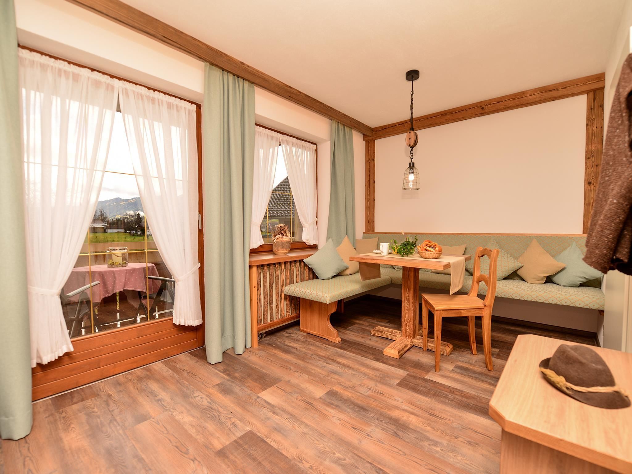 Die gemütliche Ferienwohnung ist im modernen, alpenländischen Stil mit viel Liebe zum Detail ausgestattet. Geniessen Sie auf dem Südbalkon den herrlichen Blick in die Oberallgäuer Bergwelt. Das Tageslichtbad ist komplett mit Fön und Kosmetikspiegel ausgestattet zudem sind Kosmetikartikel vorhanden. Die Küche verfügt über Mikrowelle , 2-Platten-Herd und Geschirrspüler.