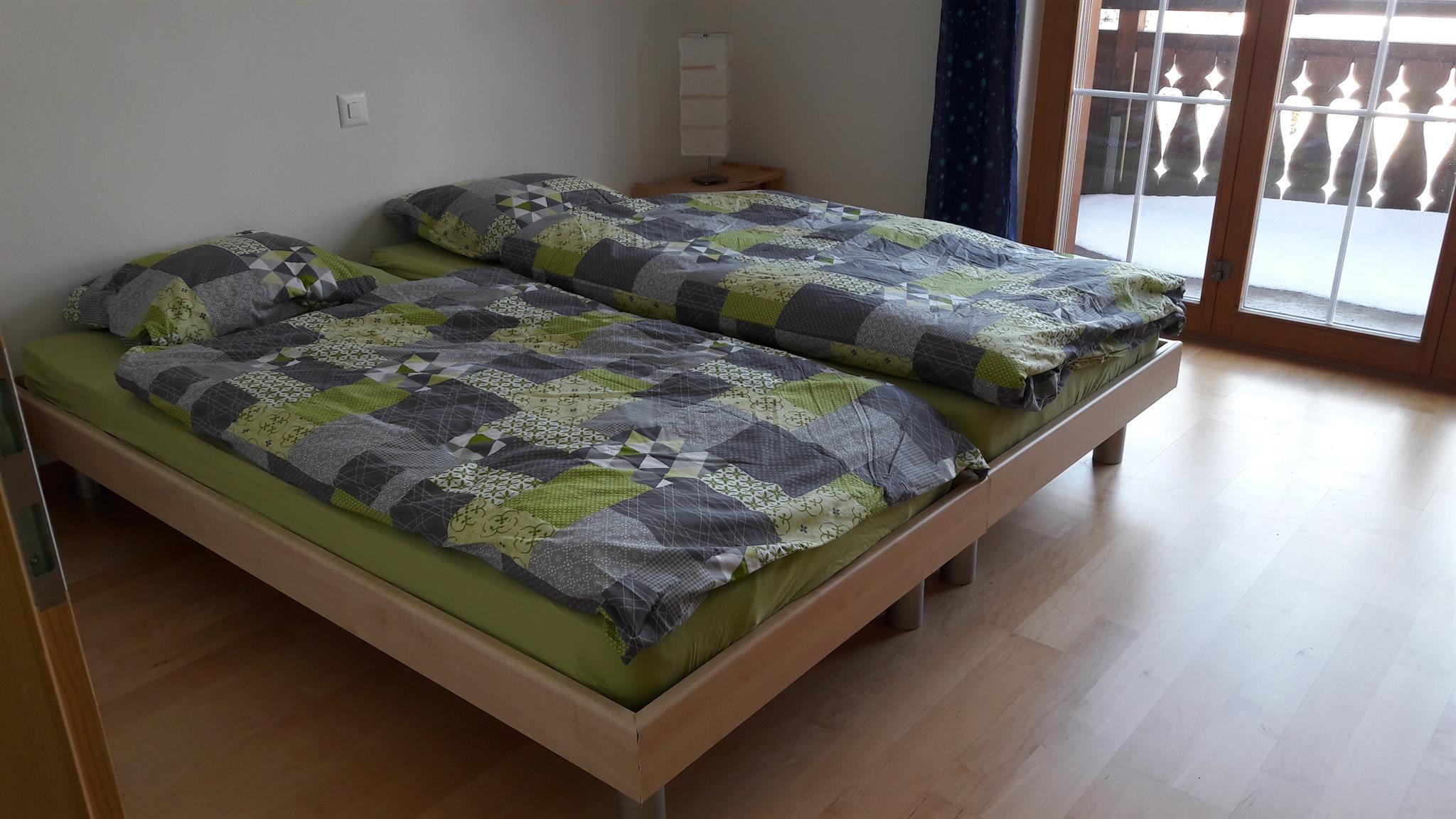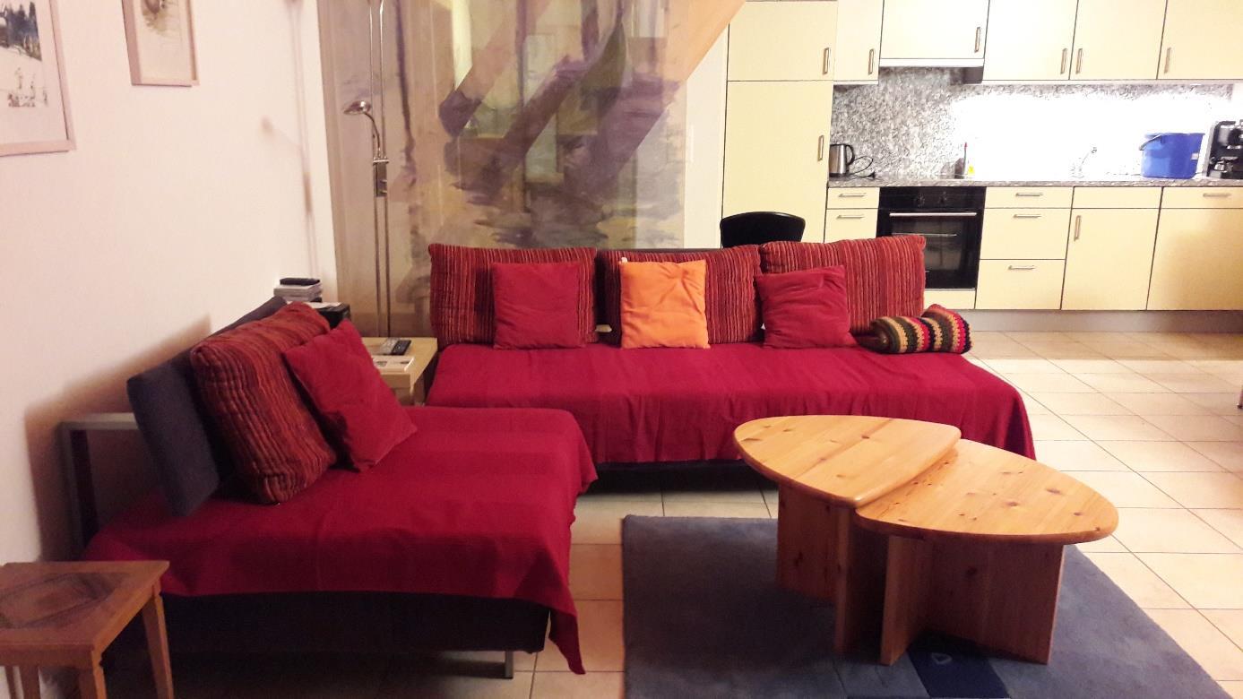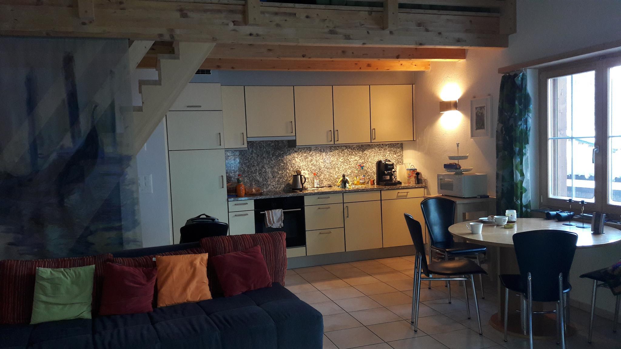 2 ½ Zimmer (ca. 75 m2) mit Galerie, über Raumspartreppe erreichbar; 1. Dachgeschoss, Baujahr 2007, Mehrfamilienhaus mit Lift, grosser Balkon Nord/West bis Ost, schönes Panorama, Autoabstellplatz in Tiefgarage, Mitbenützung des Ski -und Skischuraum, Bikeraum; Wohnzimmer mit Küche (Backofen, Mikrowelle, 4 -Plattenglaskeramikherd, Dunstabzugshaube, Kühlschrank mit separatem Tiefgefrierfach, Geschirrspülmaschine, Kaffeemaschine, Raclette- und Fondueset; Essecke für 4 Personen, 1 Schlafzimmer mit 2 separaten Betten (90/200cm), Galerie mit 2 separaten Betten, über Raumspartreppe vom Flur her erreichbar; Dusche/WC mit Handtuchtrockner; Wohnzimmer mit Satelliten TV, WLAN, gemütliche Sitzecke, Schwedenofen; Abfallsack, Geschirrspültabletts vorhanden; Die Wohnung muss besenrein übergeben werden; Haustiere nicht erlaubt; Nichtraucher-Wohnung; Benützung der Waschmaschine in Ausnahmefällen mit Rücksprache möglich (gegen Gebühr CHF 30.- pro Aufenthalt).