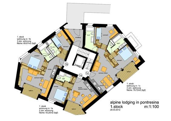 Die ALPINE LODGES sind stilvolle Ferienwohnungen in hochwertiger alpiner Architektur und mit einem rundum buchbaren Service. Sie reflektieren den aktuellen alpinen Lebensstil und geben Antwort auf die neuen Bedürfnisse des multioptional ausgerichteten Feriengastes. Die ALPINE LODGES duften nach Engadin und Ursprünglichkeit, sie bieten Geborgenheit, Abwechslung von Zuhause und unabhängiges Feriendesign. Die Chesa Plattner befindet sich mitten in Pontresina an ruhiger und zentraler Aussichtslage. Massive Arve, Holzbeton, helle und weiche Materialien wie Schafwolle und schwere Stoffe reflektieren das Engadin in seiner authentischen und ursprünglichen Form. Einrichtung und Ausstattung sind gleichzeitig zeitgemäss und typisch für die Region. Spa mit grosser Sauna, Dampfbad und Fitnessraum im Erdgeschoss.