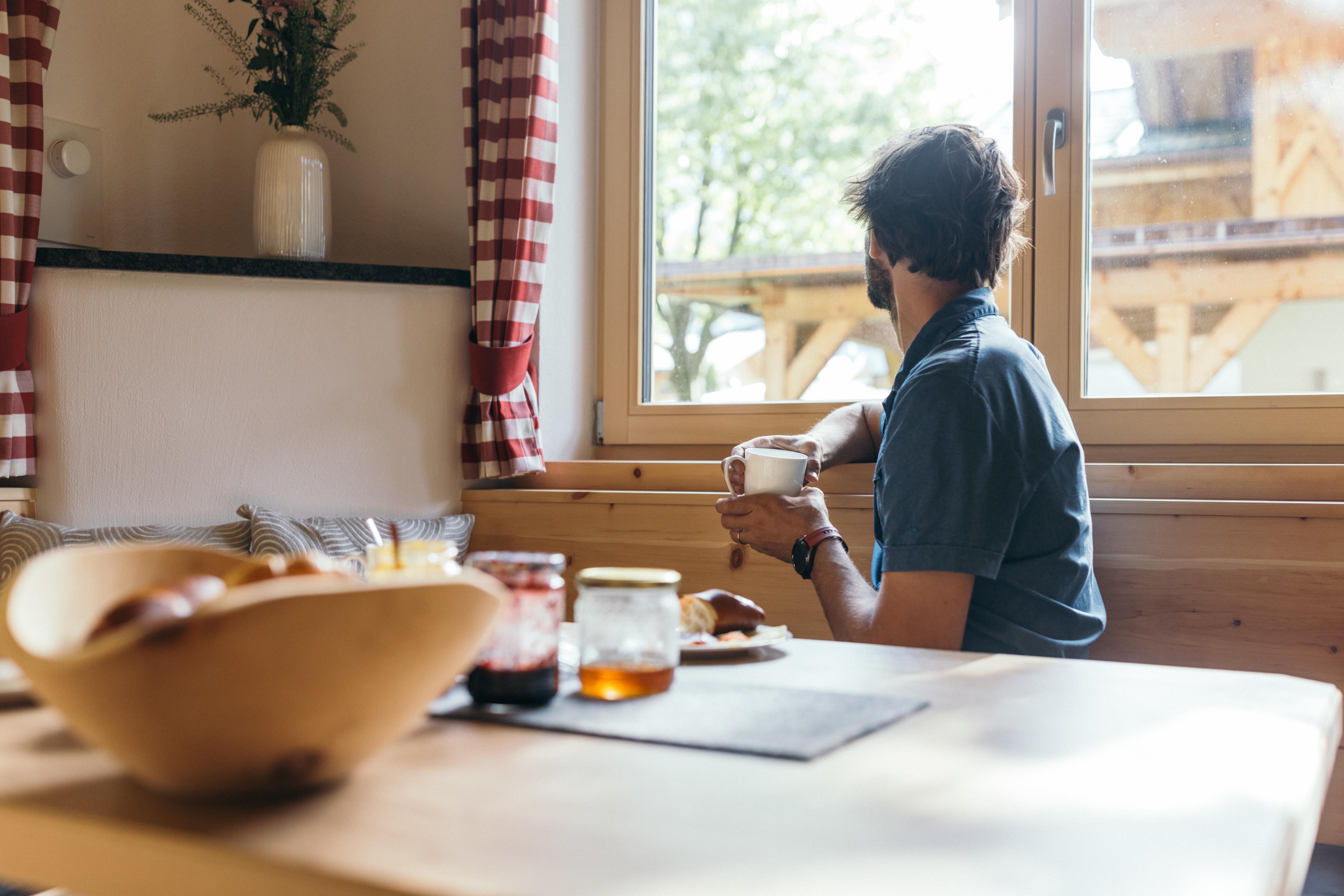 Living en Suite für 2 bis 3 Personen. Wohlfühlschlafzimmer aus Zirbenholz, weitläufiger Wohnraum mit Sitzecke am Kachelofen, Kuschelsofa, Schreibtisch und moderner Pantryküche, Badezimmer mit Dusche, separates WC und große, möblierte Veranda. Inklusive Sat-TV, Radio, Kühlschrank, Zimmersafe, Veranda und gratis W-Lan.