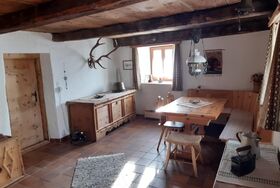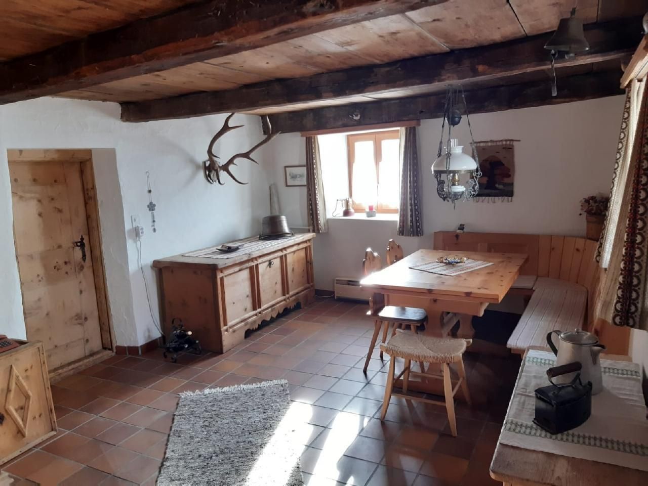 Gemütlich eingerichtetes Haus mit alter Arvenstube, einem grossen Eingangsbereich, einer Wohnküche, 3 Schlafzimmer (6 Betten), einem Fernsehzimmer, 2 Toiletten, einer Dusche und einem Gartensitzplatz/Grill auf der Wiese gleich hinter dem Haus.