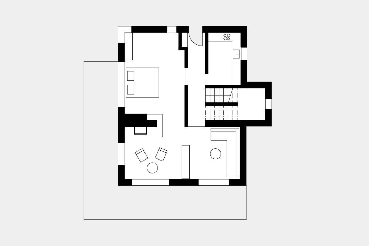 Sonstige Schlafzimmereinrichtung: Der Schlaf-, Ess-, Büro- und Wohnbereich ist loftartig, das heisst alles befindet sich in einem Raum. Küche und Bad sind separat.