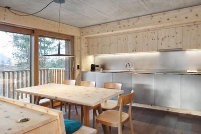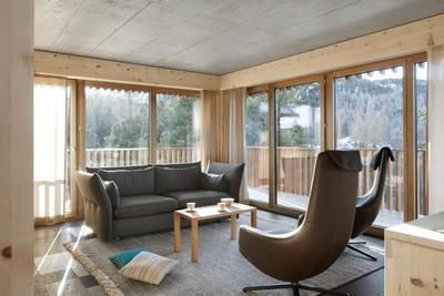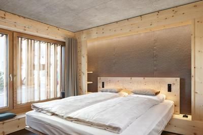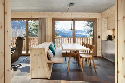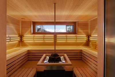 Wellnessbereich (Sauna, Dampfbad, Ruheraum, Fitnessraum), Aussenbereich mit Holzdeck, Sitzbank und Liegen, Aussendusche. Ski- und Veloraum, Parkgarage mit 4 Ladestationen für Elektrofahrzeuge.