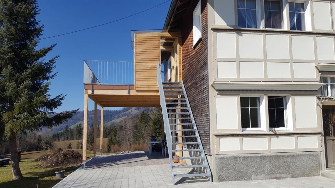 Mitten in Landwirtschaftszone liegt unser Traumhaus. Den freien Blick auf die sanften grünen (oder verschneiten) Hügel erfüllt uns täglich mit Glück und Dankbarkeit. Die jungen Rehe beim Spielen zu beobachten ist das Grösste für uns. Wir leben hier in unserem kleinen Paradies... gerne teilen wir unsere Idylle, denn wie man so schön sagt: Geteiltes Glück, doppeltes Glück! :-)