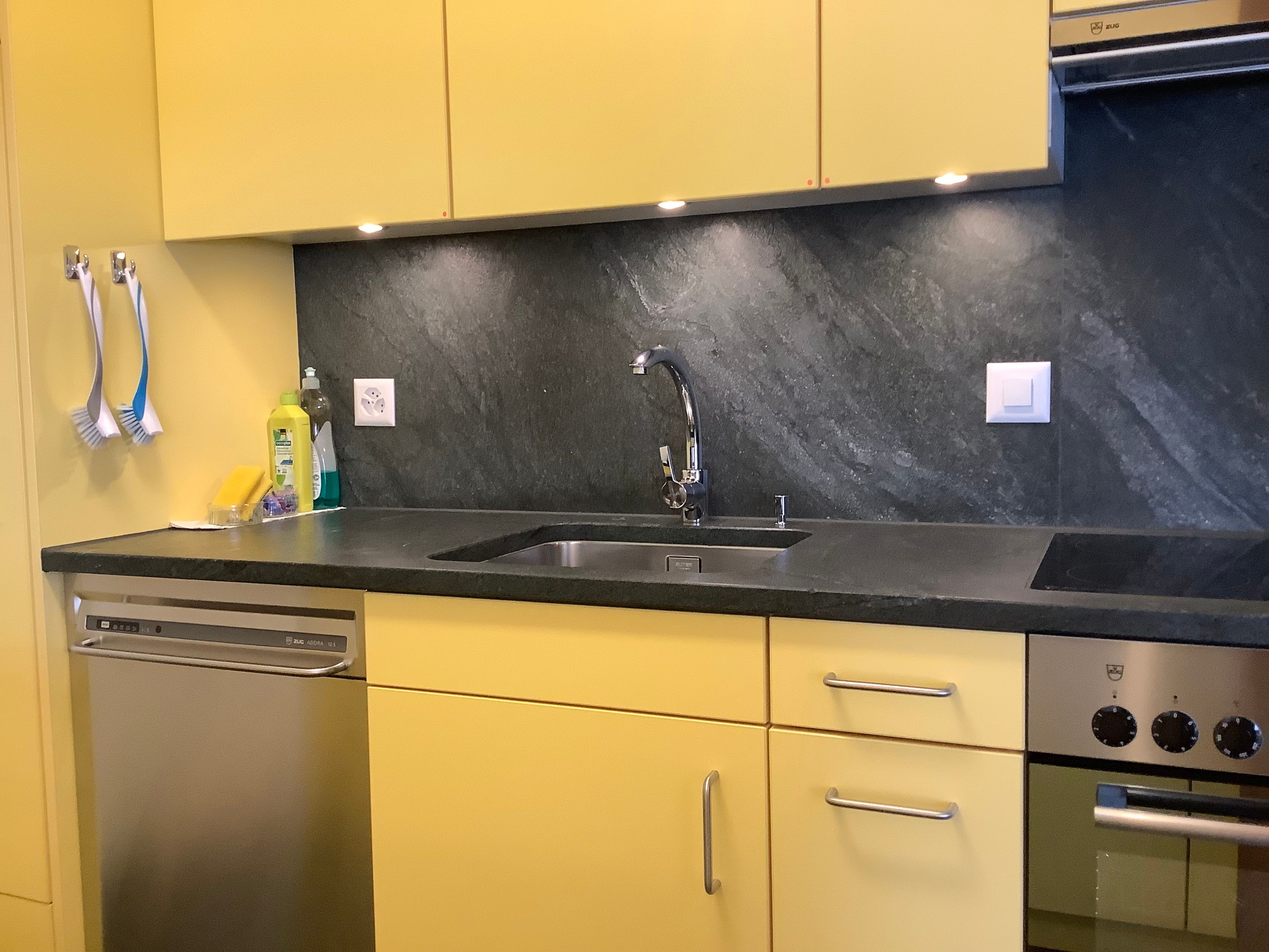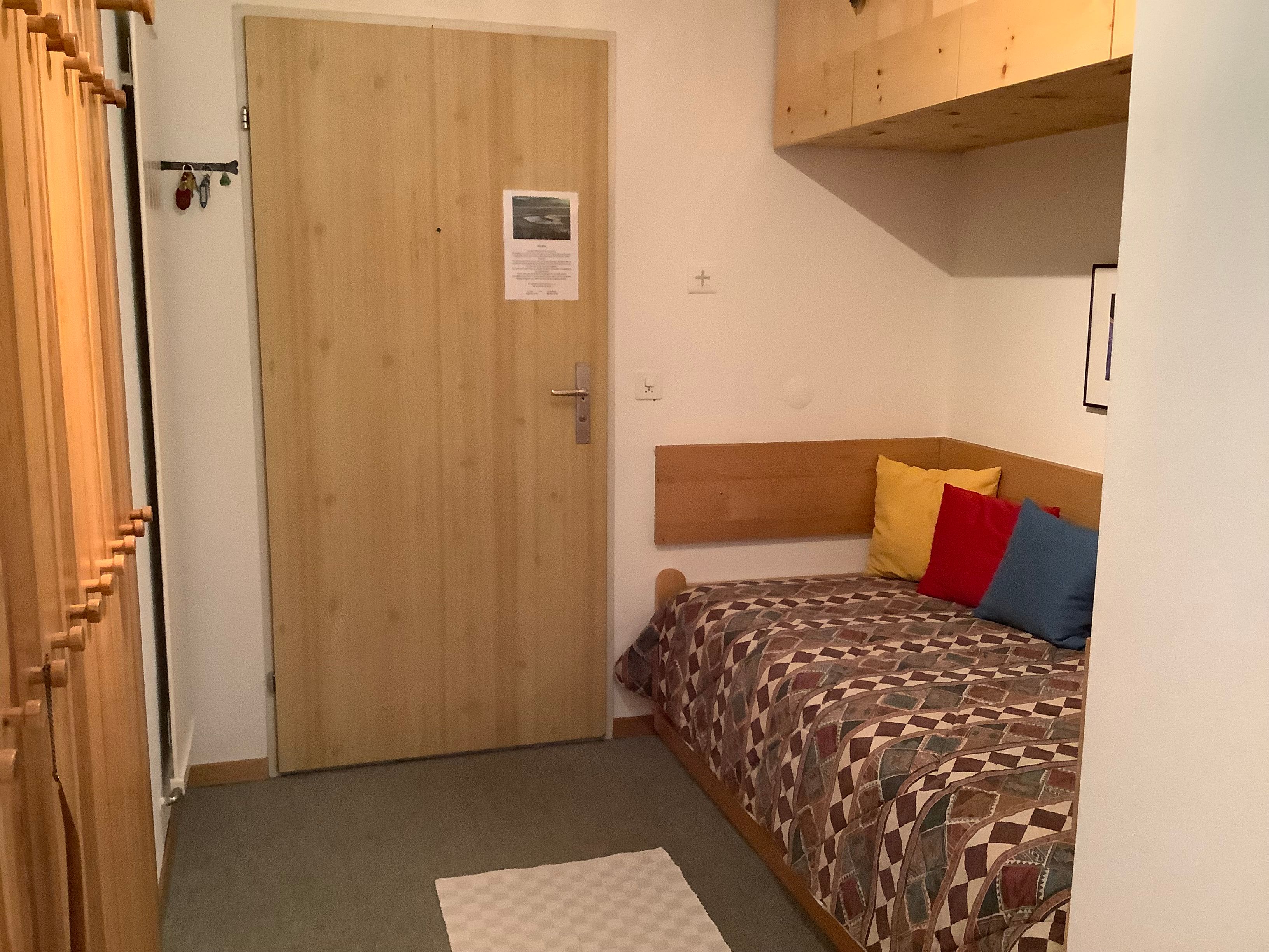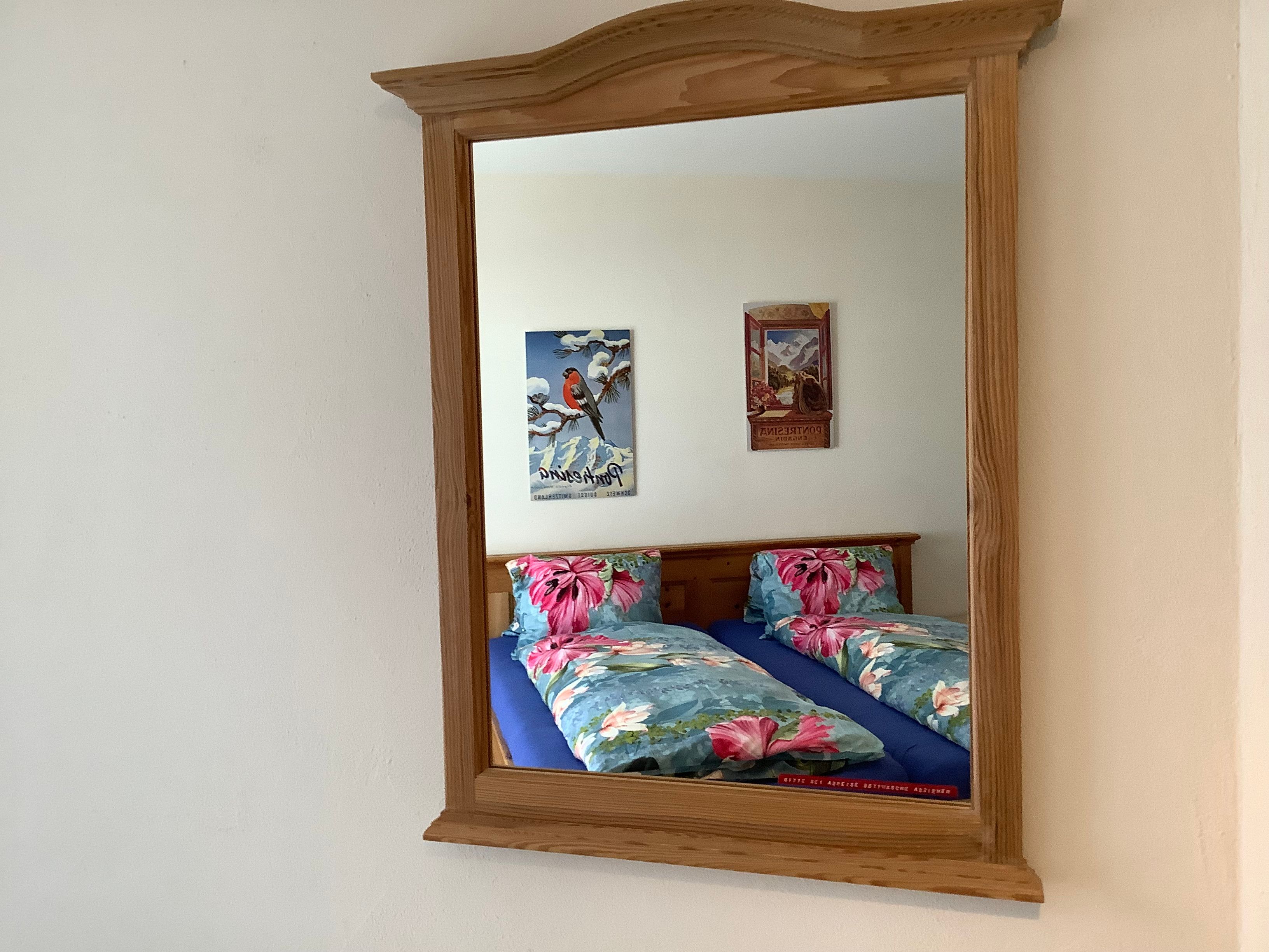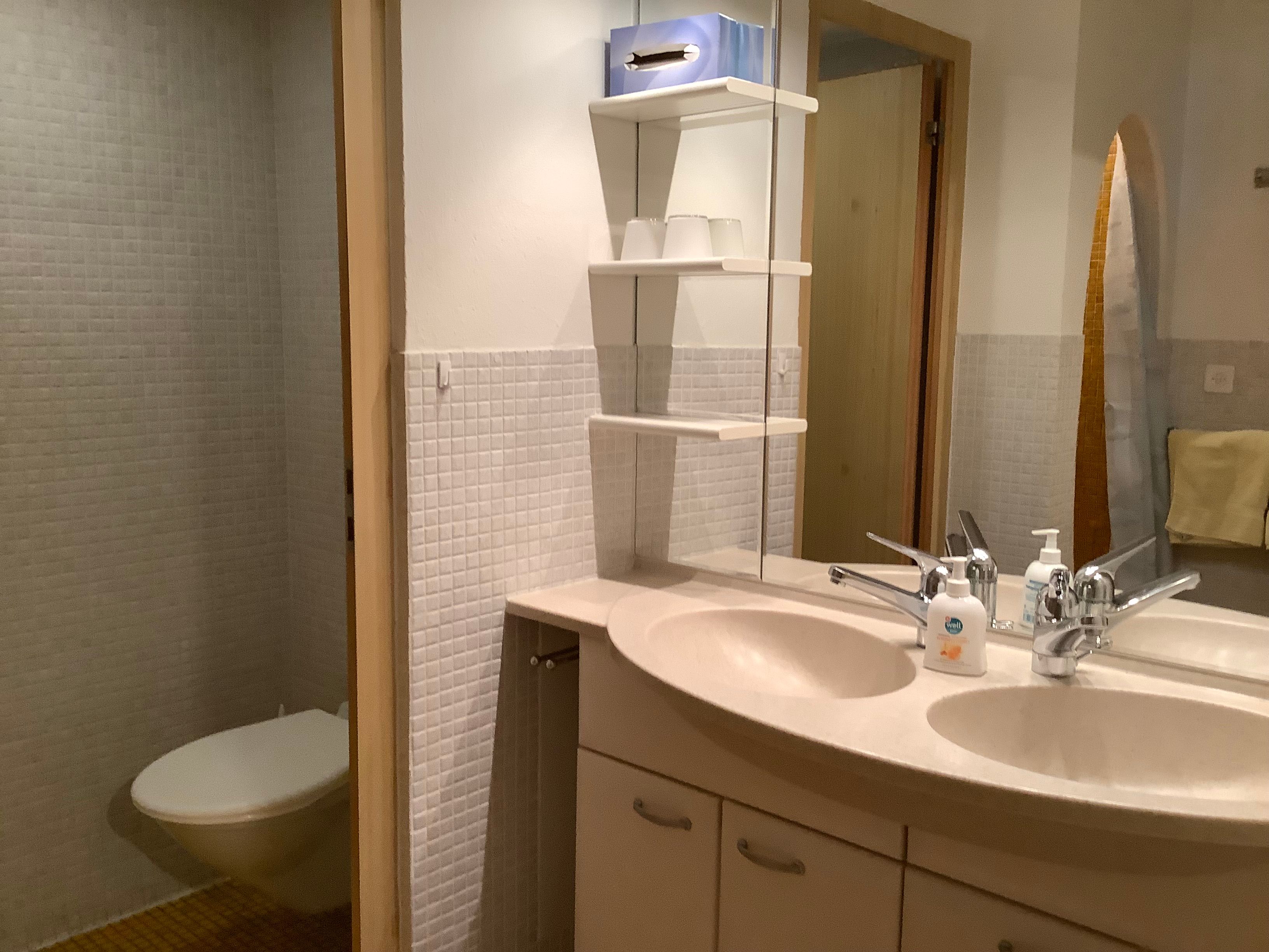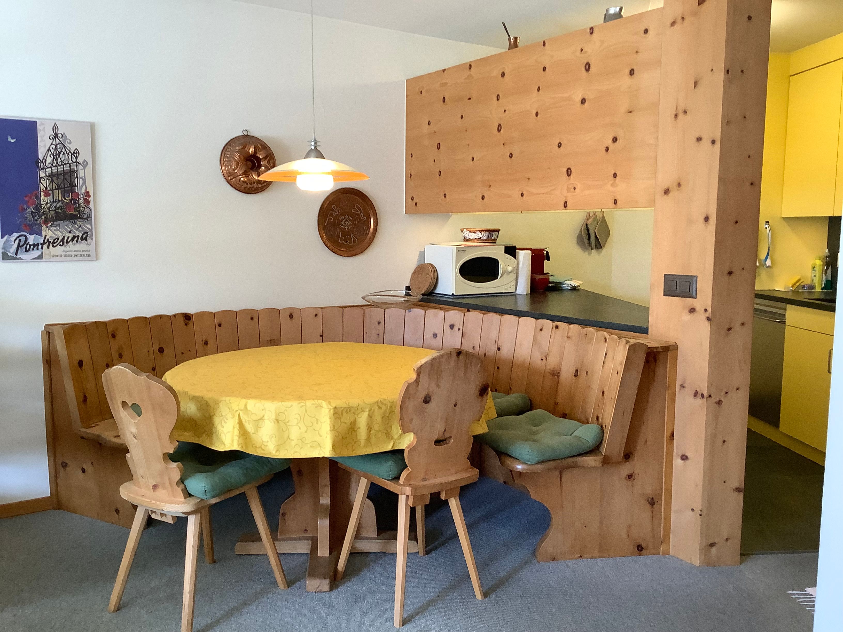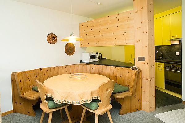 Sehr schöne, geräumige, mit viel Arvenholz gemütlich eingerichtete 2 1/2 Zimmerwohnung (65m2) im 1.Stock. Ruhig gelegen. Das Wohnzimmer bietet mit einer gemütlichen Couch, 2 Fernsehsesseln, Swisscom TV und WLAN, Raum zum Entspannen. Ein Balkon mit Aussicht in die fantastische Bergwelt, vollständig möbliert mit Tisch und Stühlen, sowie Liegen und Sonnenschirm lädt zum Verweilen ein. Die offene, moderne Küche ist ausgestattet mit Glaskeramik Kochfeld, Geschirrspüler, Backofen, grossem Kühlschrank Kaffeemaschine, Kapselsystem (Nespresso), Filterkaffeemaschine, Wasserkocher, Microwelle, Fonduegeschirr und Raceletteofen. Ein runder Esstisch mit Eckbank lädt zum gemütlichen Zusammensitzen ein. Das Schlafzimmer mit Doppelbett (2 x 90 x 200), Einbauschrank und direktem Zugang zum Balkon, bietet grosszügigen Raum für entspannte Nachtruhe. Ein 3. Bett findet sich in einer etwas abgetrennten Nische im Vorraum. Das Badezimmer bietet mit Dusche, abgetrenntem WC und einem Doppelwaschtisch grossen Komfort auf kleinem Raum. Gemeinsame Velo-und Skiräume sowie eine Waschmaschine finden sich im Keller im Haus. Ein Aussenparkplatz steht zur Verfügung. Die Nähe zur Bushaltestelle bietet den idealen Ausgangspunkt für Ihre Unternehmungen. Wandern, Biken, Skifahren, Langlaufen beginnt direkt vor der Haustüre. Im Winter erreichen Sie die Loipen bequem zu Fuss.