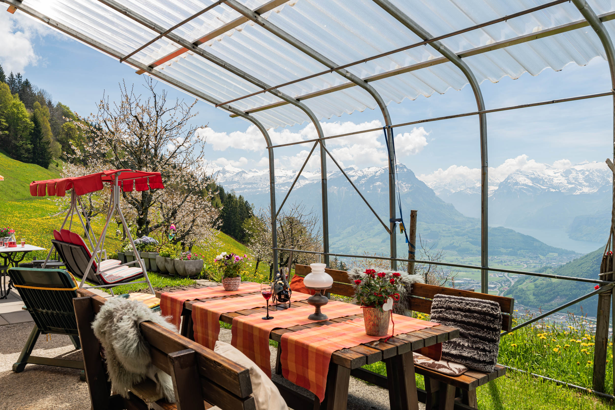 Geniessen Sie erholsame, ruhige Ferien in frischer Bergluft, weit weg von Stress und Hektik. Ihr Zuhause während den schönsten Tagen im Jahr befindet sich mitten in der Zentralschweiz auf 1100 müM. Der grosszügiger Sitzplatz bietet Sicht auf unzählige Berggipfel sowie den Vierwaldstätter- und den Lauerzersee.