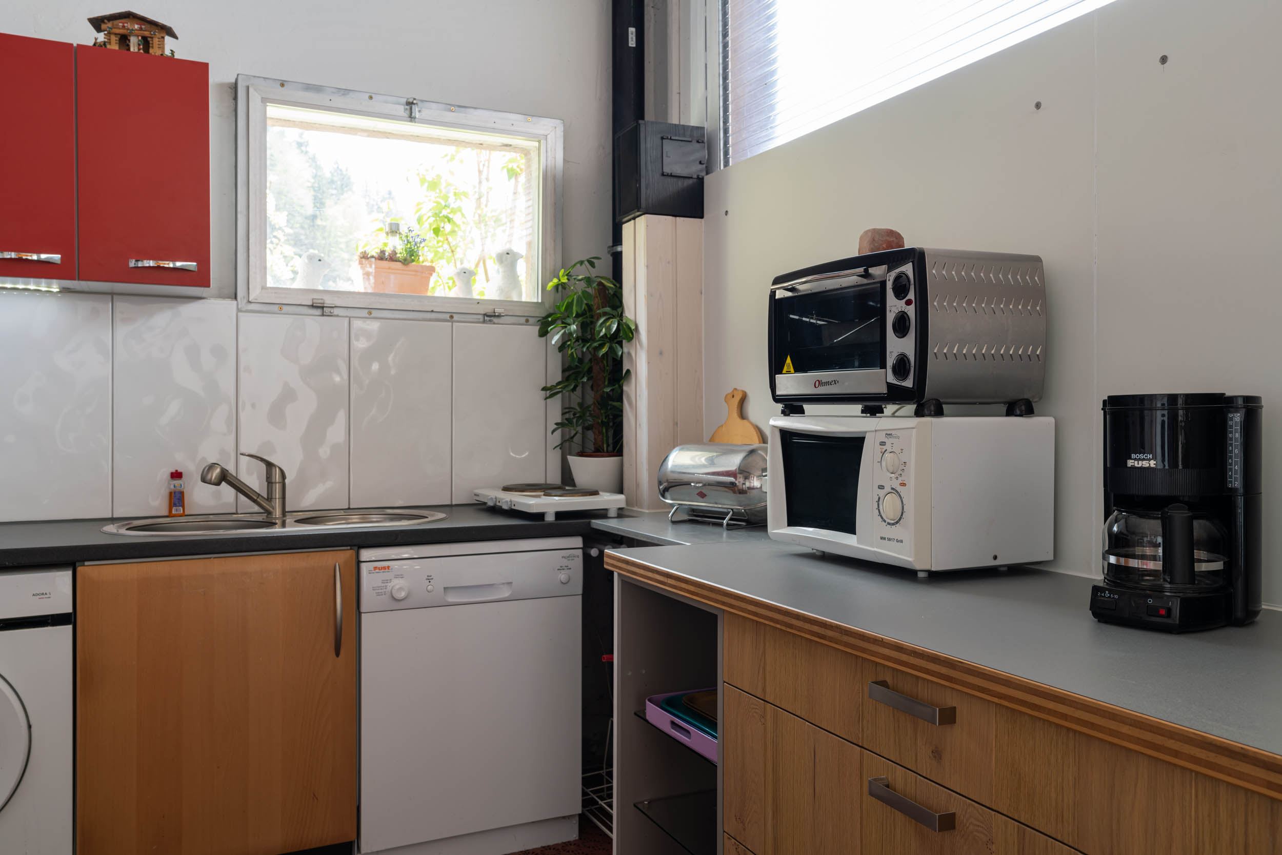 Wohn-/Essbereich mit TV. Küche mit 2 Kochplatten, Mikrowelle, Geschirrspüler. Dusche/WC. WLAN.