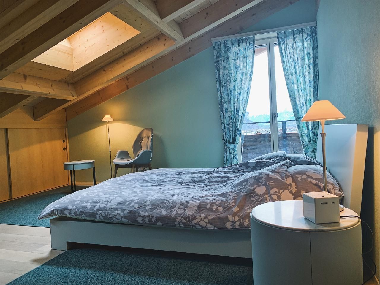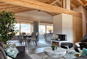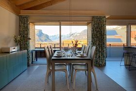 Das geschmackvoll eingerichtete Ferienapartment am Fuße des Haslibergs ist 2019 hochwertig renoviert worden und bietet höchsten Komfort. Mit drei Schlafzimmern, die jeweils mit Doppelbetten ausgestattet sind, bietet das Apartment Platz für sechs Personen. Die an die Schlafzimmer angebundenen Badezimmer sind mit großzügigen Regenduschen ausgestattet. In einem Badezimmer befindet sich zudem eine Badewanne mit Lichteffekten. Das Wohnzimmer der 150m² großen Wohnung bietet einen Panoramablick in die Berge, einen Kamin sowie beidseitge Balkone mit Grillmöglichkeit. Die angrenzende offene Küche mit Kochinsel und Induktionsherd bietet eine moderne Ausstattung inklusive Spülmaschine, Dampfgarer, Ofen, Tellerwärmer und einem Fondue- und Racletteset. Der Esstisch für sechs Personen lässt sich ausziehen, sodass zehn Gäste hieran Platz finden. Ein Haushaltsraum mit Waschmaschine, Trockner, Bügeleisen und Bügelbrett, ein Gäste-WC sowie ein Trockenraum im Keller mit Wäscheleine und Luftentfeuchter runden die Ausstattung des Ferienapartments ab. In der Tiefgarage ist ein Fahrzeugstellplatz vorhanden und das Apartment ist über einen Fahrstuhl erreichbar.
