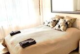 Schlafzimmer mit neuem Boxspringbett (200cm x 180 cm), Matratze H2 (mittelhart) mit Kissenauswahl. Hochwertige Duvets und Kissen