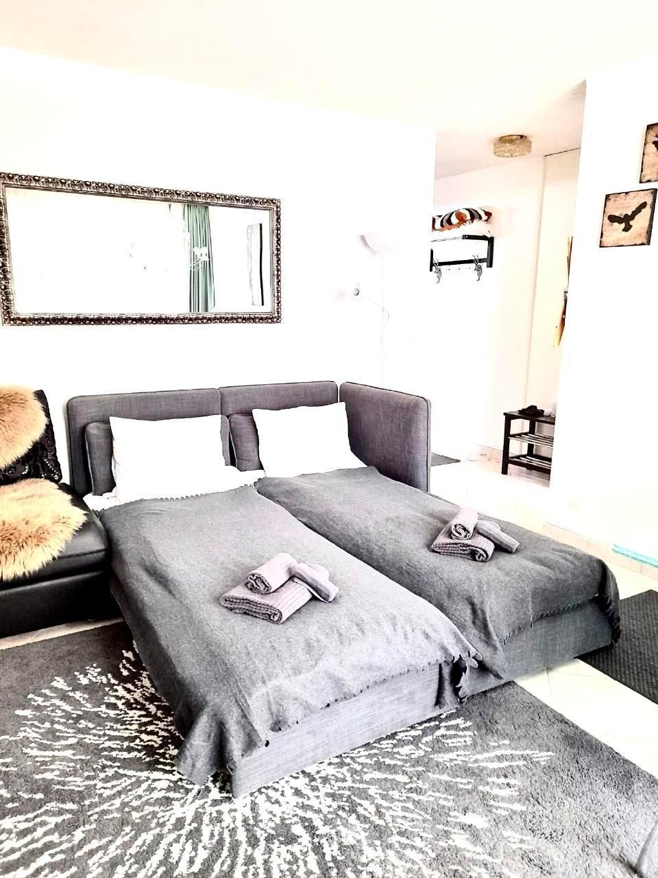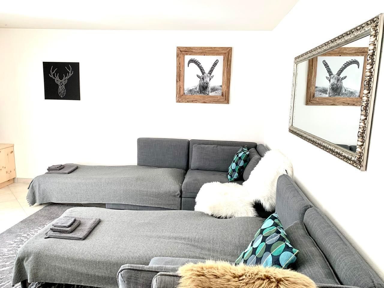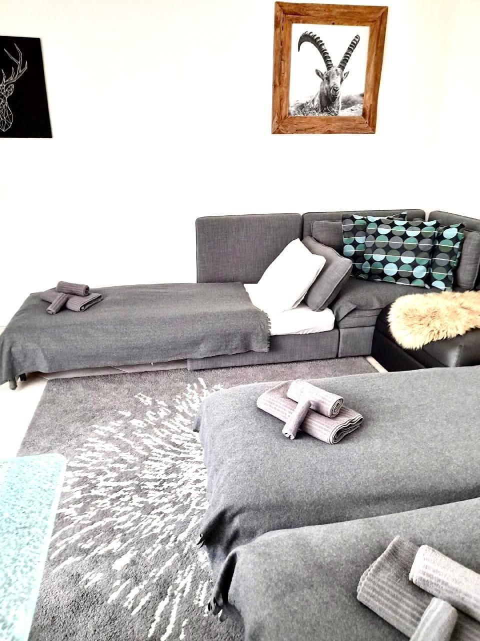 Wohnzimmer mit 3 Sofabetten, direkter Balkonzugang, SMART TV mit Apps