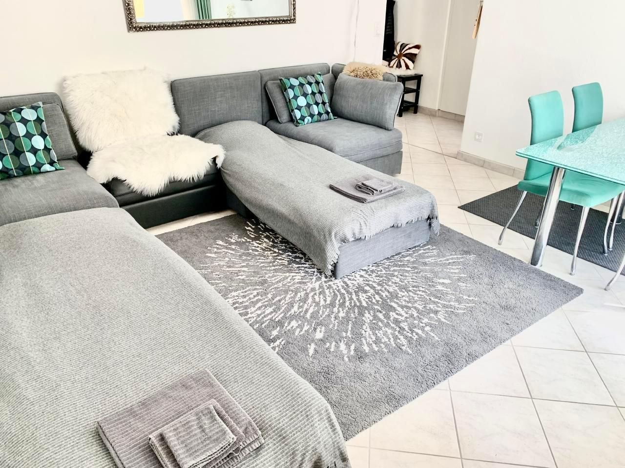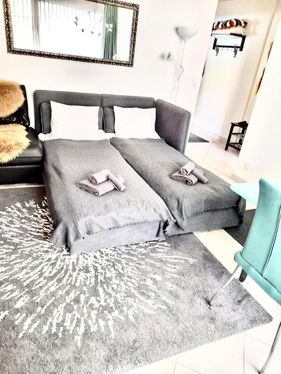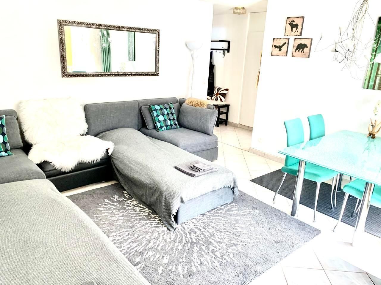 Wohnzimmer mit 3 Sofabetten, direkter Balkonzugang, SMART TV mit Apps