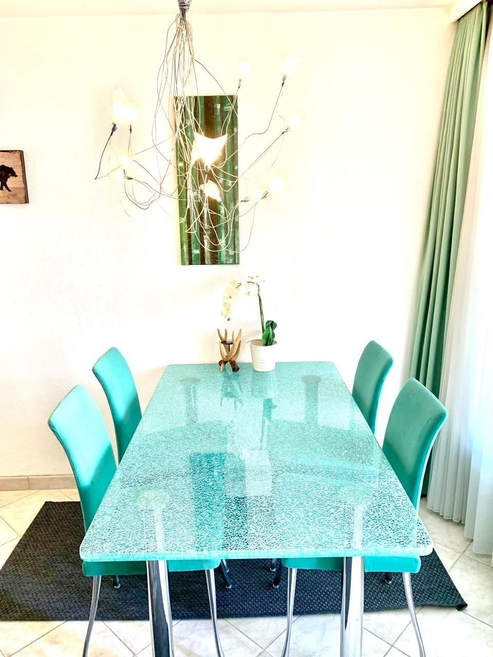 Sonstige Wohnzimmerausstattung (Wohnzimmer1): Stabiler Esstisch mit 5 Stühlen (Hochstuhl auf Anfrage), gratis WIFI, Flachbildfernsehen, Balkon