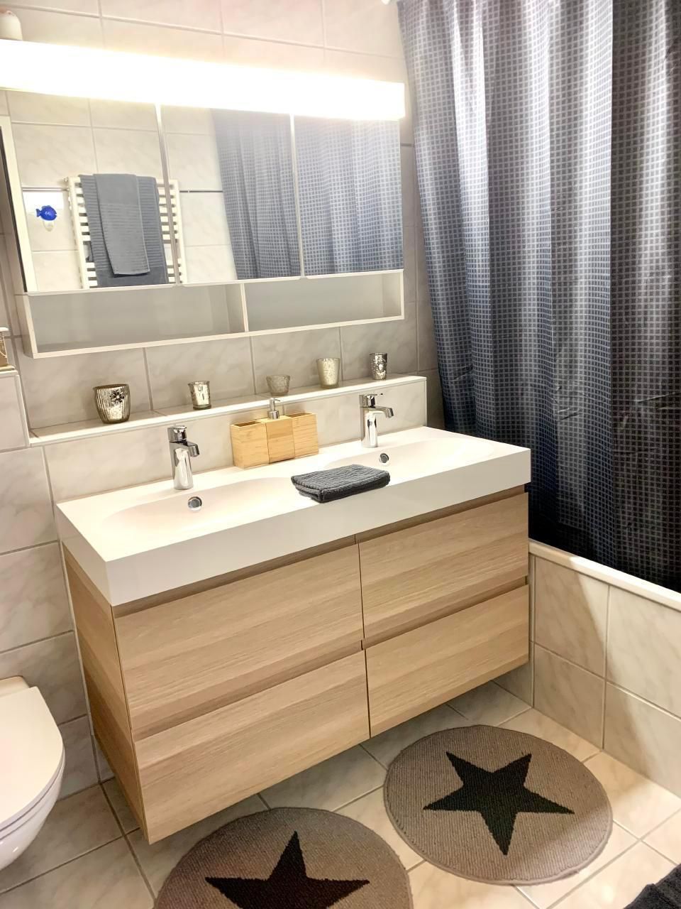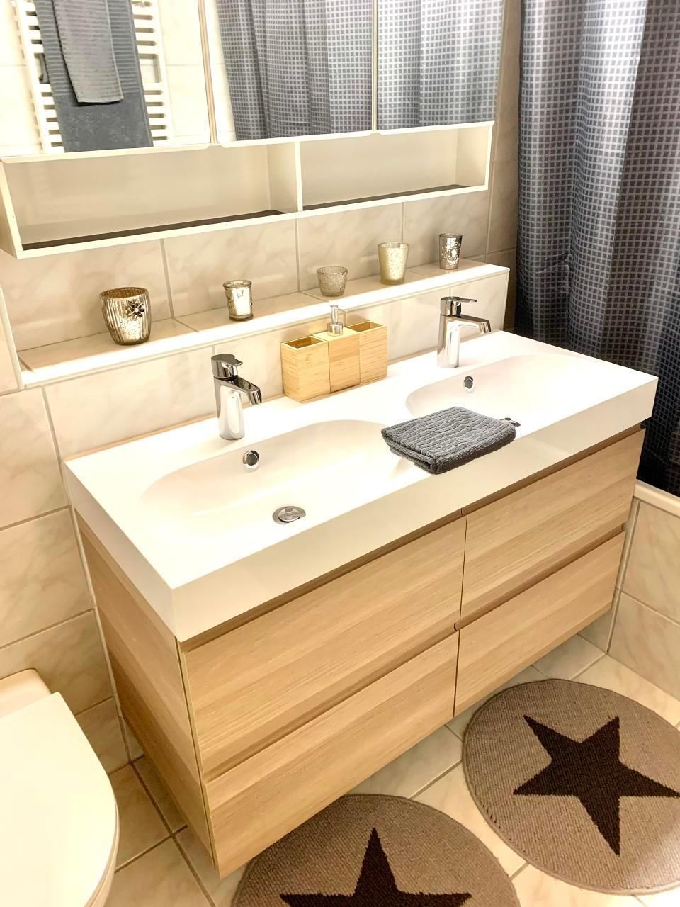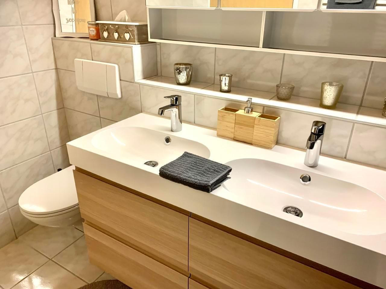 Badezimmer ist mit Badewanne, 2 Lavabos