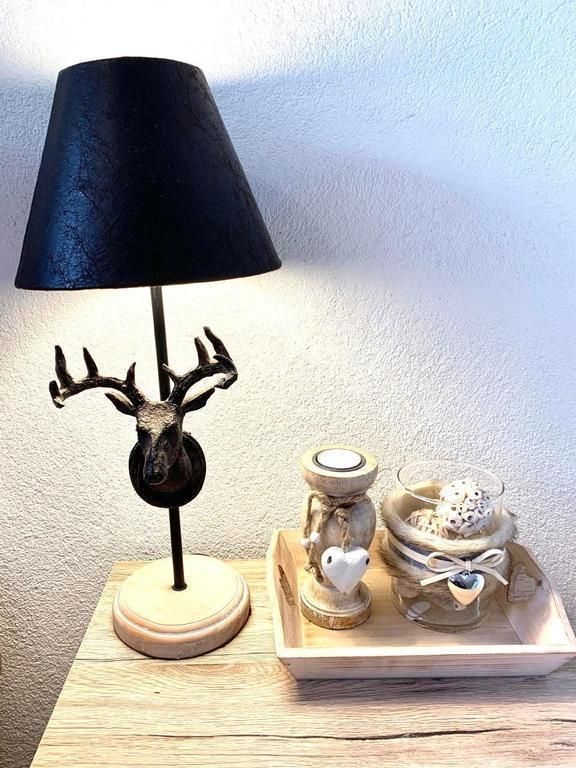 Sonstige Schlafzimmereinrichtung (Schlafzimmer1): 2 Nachttische, 2 Tischlampen, grosser Schrank, Spiegel, Stuhl, 1 Stehlampe, Deko, Bügelbrett, Bügeleisen, 1 Kommode
