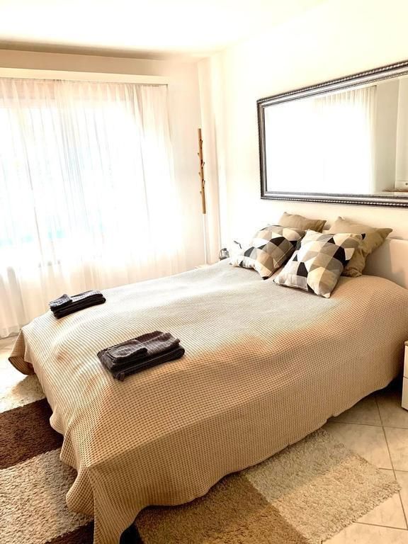 Ortsbeschreibung: Die Hertistrasse ist vis-a-vis vom Kongresszentrum und dem Hallenbad/Freibad Eau-la-la. 2 Bushaltestellen befinden sich an beide Enden der Strasse. 200 Meter zur Migros (Einkaufen) und diversen Restaurants.Basisinformationen: