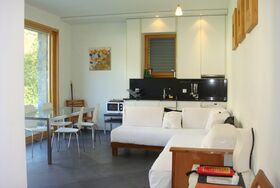 1½ -Zimmer-Wohnung(40m2) für 4 Personen: Erdgeschoss, Richtung Osten, mit Terrasse (Morgensonne), moderner Wohn-Schlafraum mit zusätzlicher Eckcouch, Radio, SAT-TV, Telefon, WIFI, Bad/WC, Küchenzeile Couch könnte man noch für 2 Personen/Kinder einbetten.