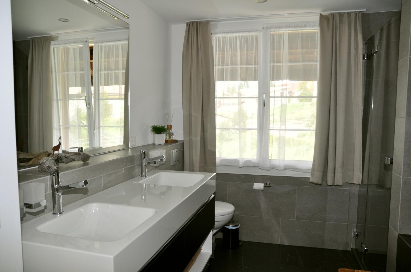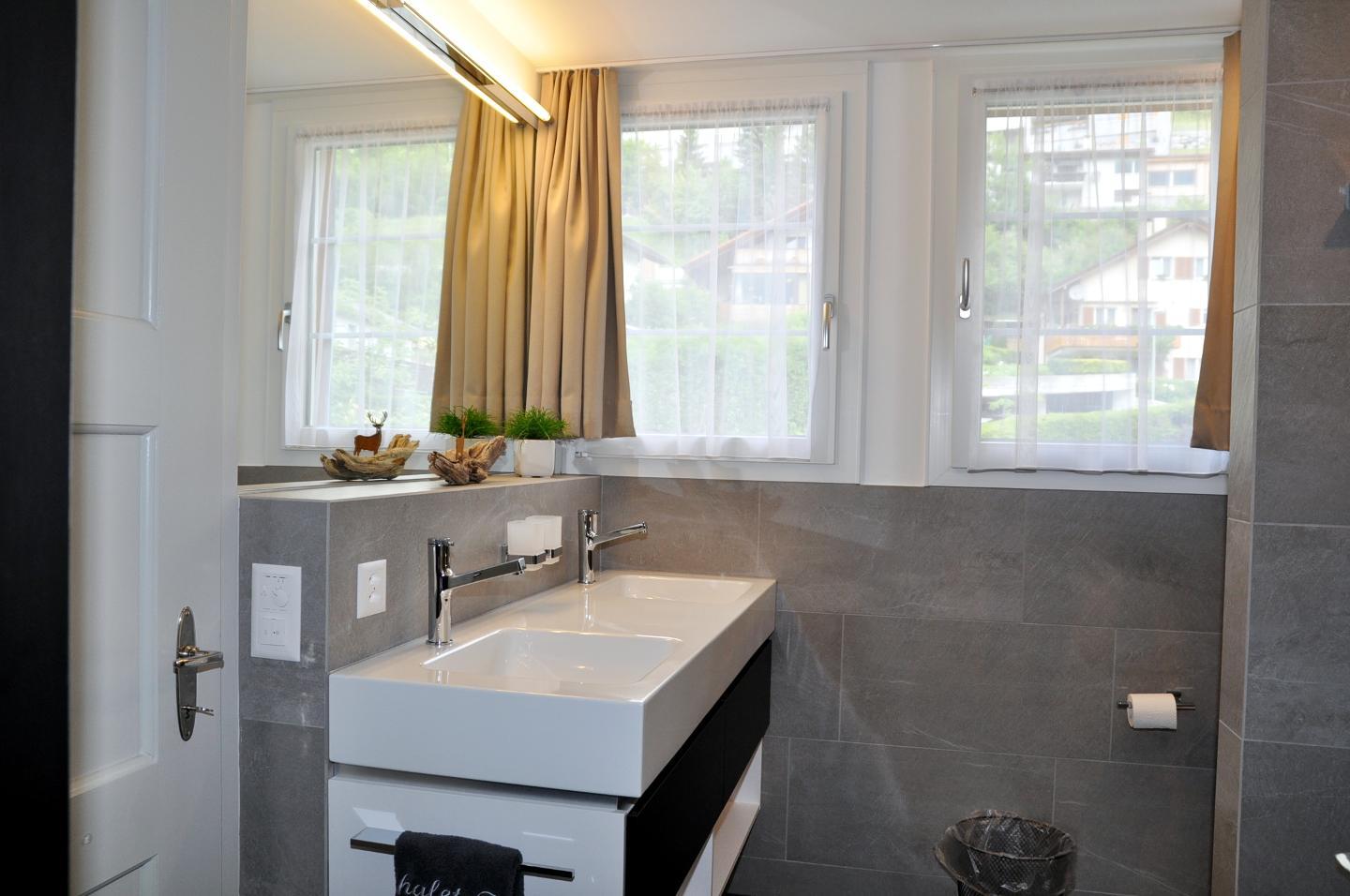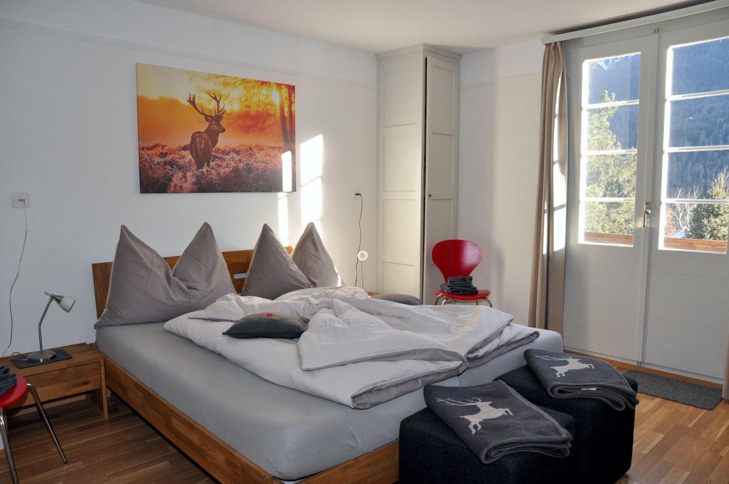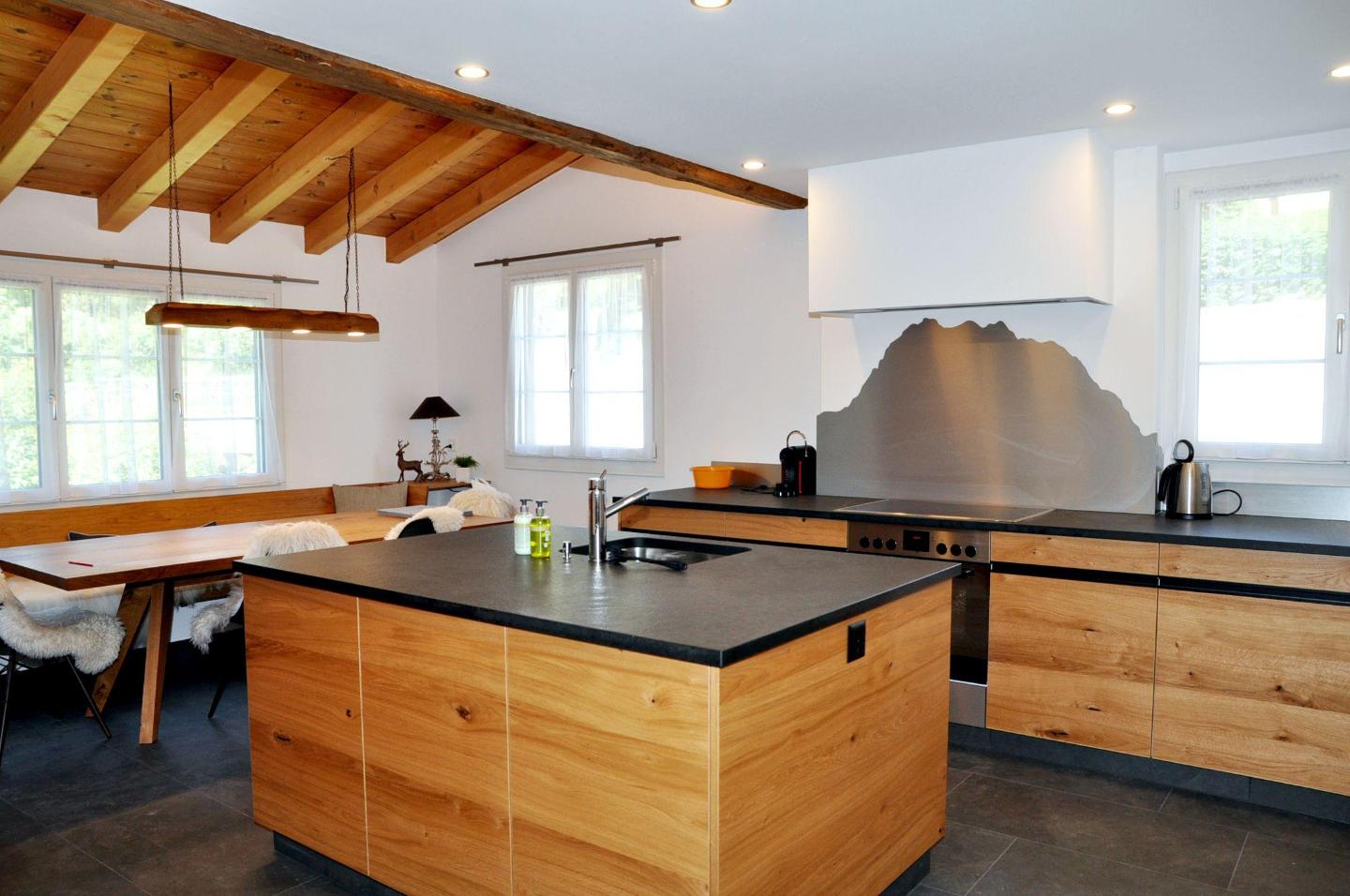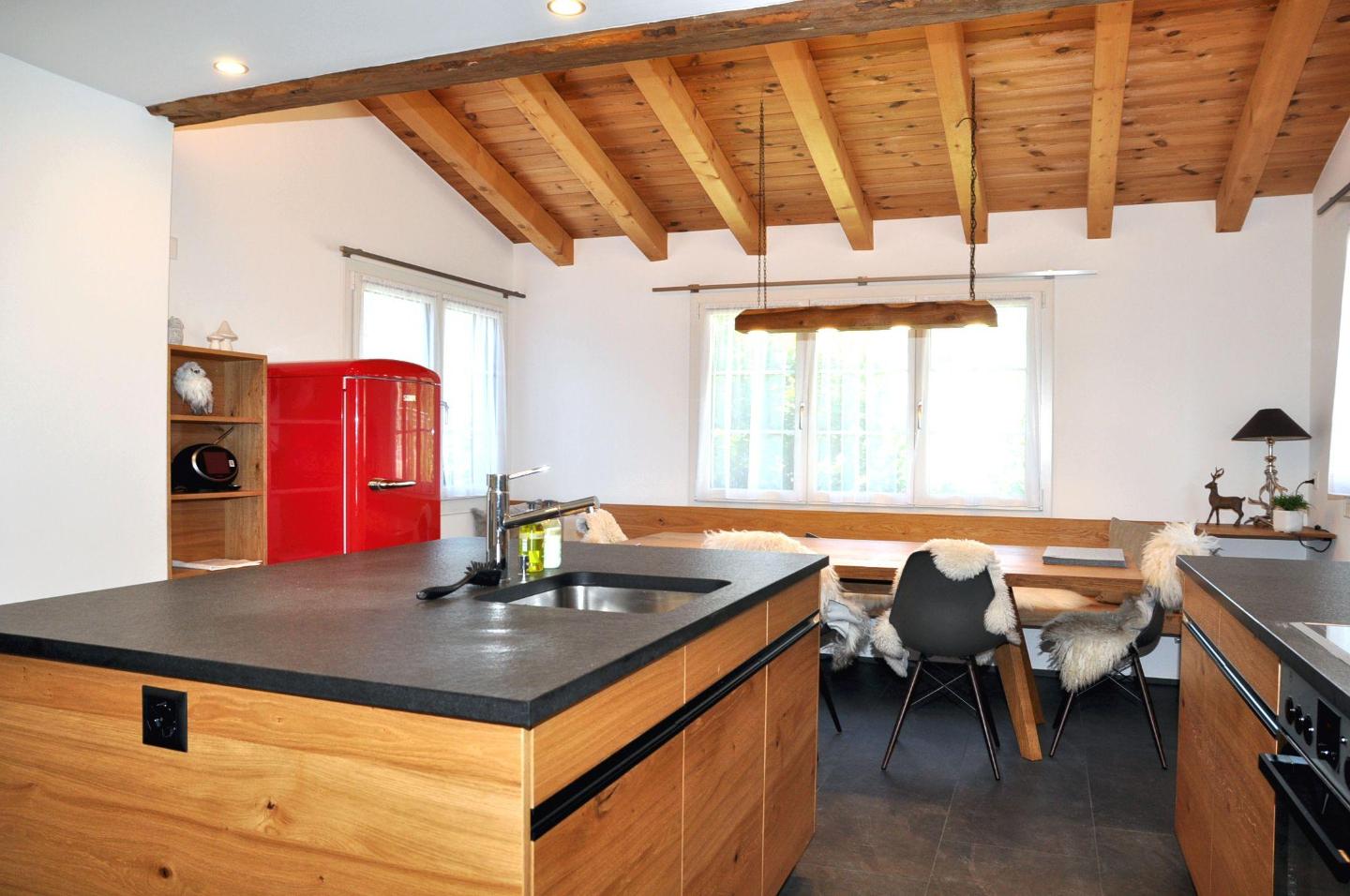 Das Ferienhaus Chalet Trü verfügt über eine helle Wohnstube, sehr moderne Küche mit Geschirrspülmaschine, Herdplatte, Fondue und Raclette Garnitur, 2 Doppelschlafzimmer eins davon mit zusätzlichem Einzelbett, zwei Nasszellen Dusche oder Badewanne/WC/Lavabo, ein Tages-WC, Nespresso-Kaffeemaschine, Gratis-WLAN u.v.m.