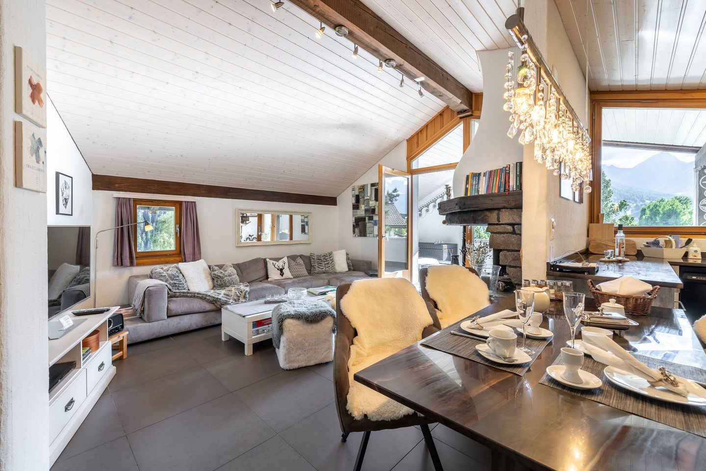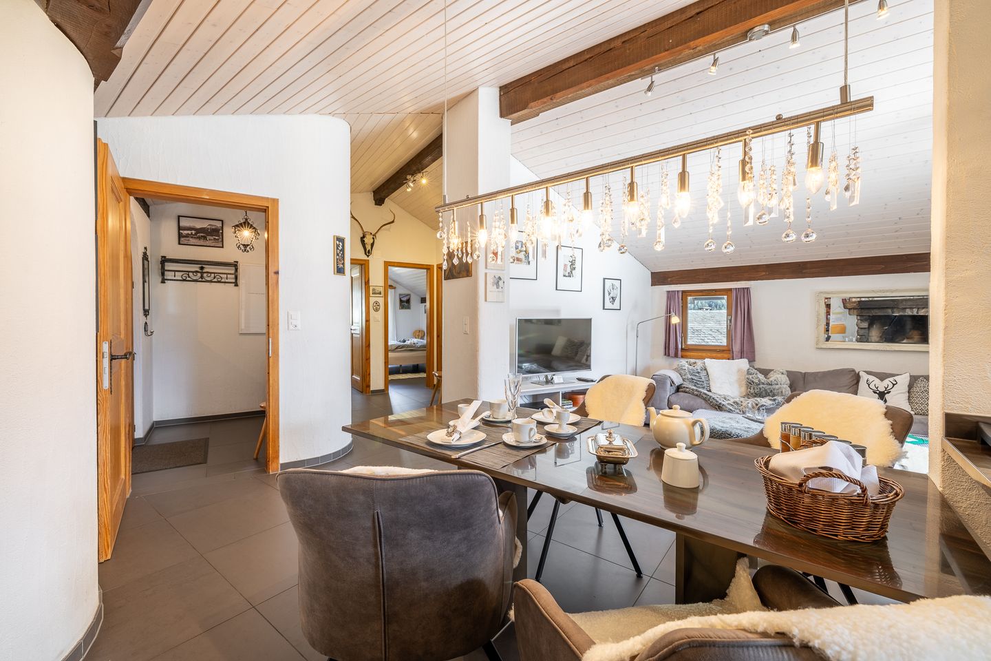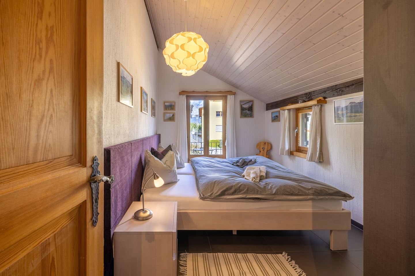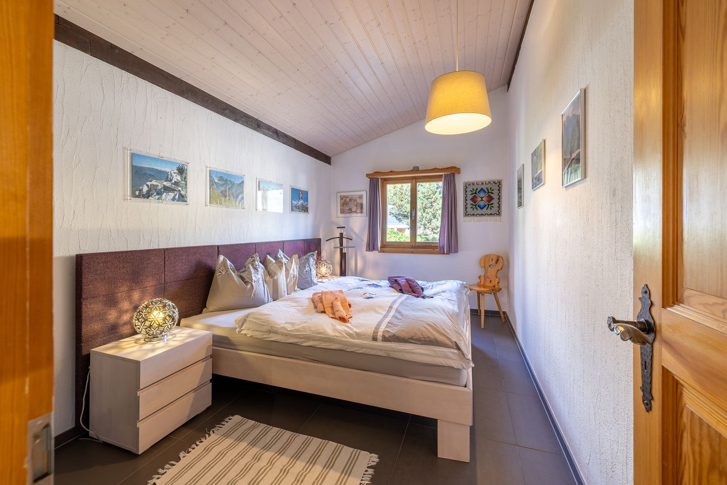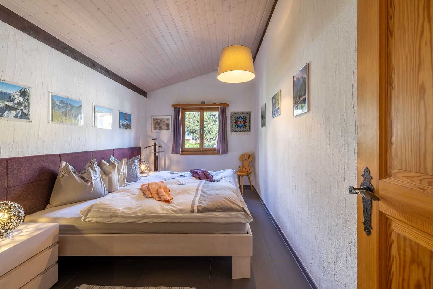 A very well equipped and comfortable 2 bedroom (2 double rooms, living room and dining area/kitchen/bath) appartment in the attic/top floor of a beautiful house in the Engadin style, in a central location. The centre of the village, the Motta Naluns cable car and the train station are, respectively, 5, 10 and 15 minutes away walking distance. There are two parking spaces in front of the separate, own entrance to the apartment.