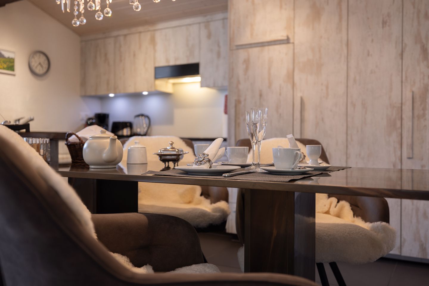 The apartment has been beautifully decorated by the owners, including contemporary artwork from their collection, as well as local Engadin elements. The modern kitchen has all necessary equipment and appliances. The renovated bathroom is of high standard.