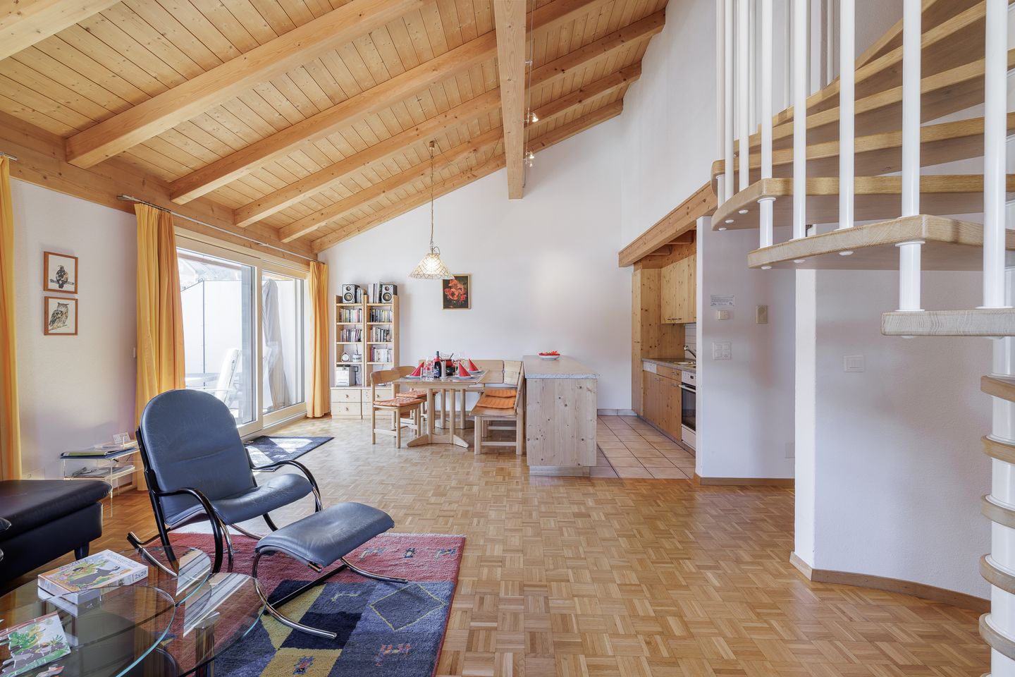 Hier erwartet Sie eine schöne 3 1/2-Zimmer-Dachwohnun an sonniger Lagen. Diese Ferienwohnung ist zentral gelegen, nur 10 Gehminuten zu den Geschäften, Restaurants, sowie das Mineralbad Bogn Engiadina. Optimale Anbindungen am Ortsbus der Sie direkt ins Skigebiet Motta Naluns bringt.