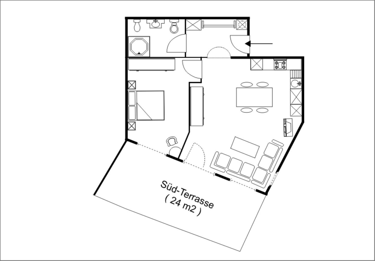 Die Ferienwohnung Trü-Sura Nr. 3 verfügt über eine helle Wohnstube mit Ausgang zum grossen Südbalkon (24m2) mit Panoramablick. Grosszügige Küche mit Geschirrspülmaschine, Induktionsherdplatte, Doppelschlafzimmer, Dusche/WC/Bidet/Lavabo. Nespresso-Kaffeemaschine, Flat Screen-TV mit Swisscom-Empfang, Gratis-WLAN u.v.m.