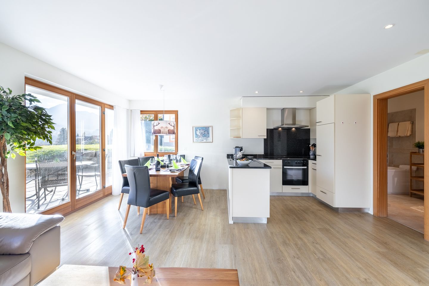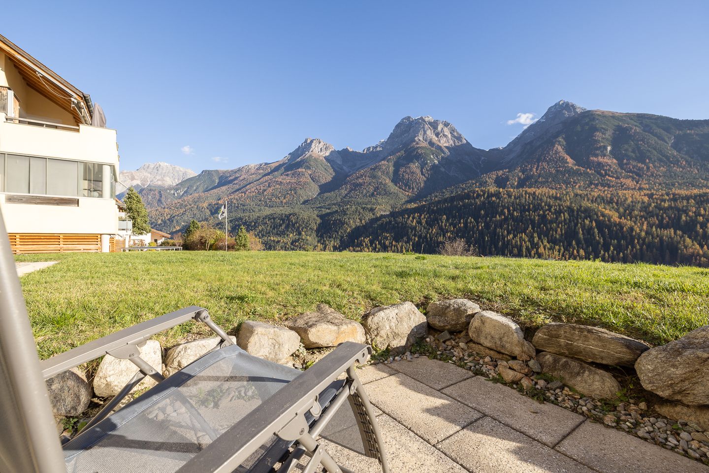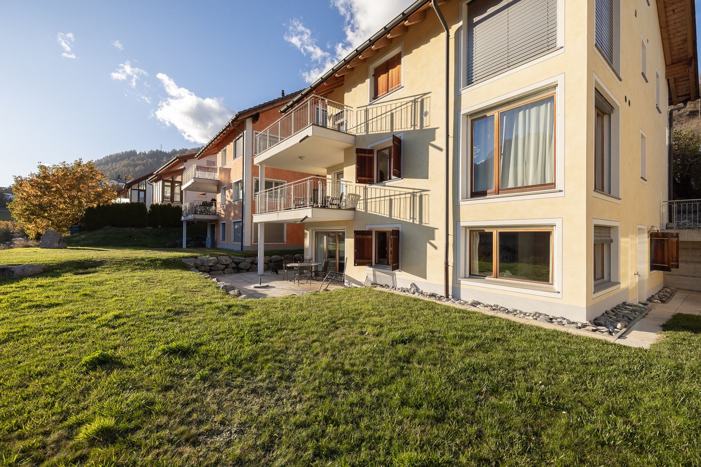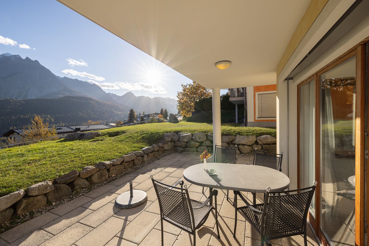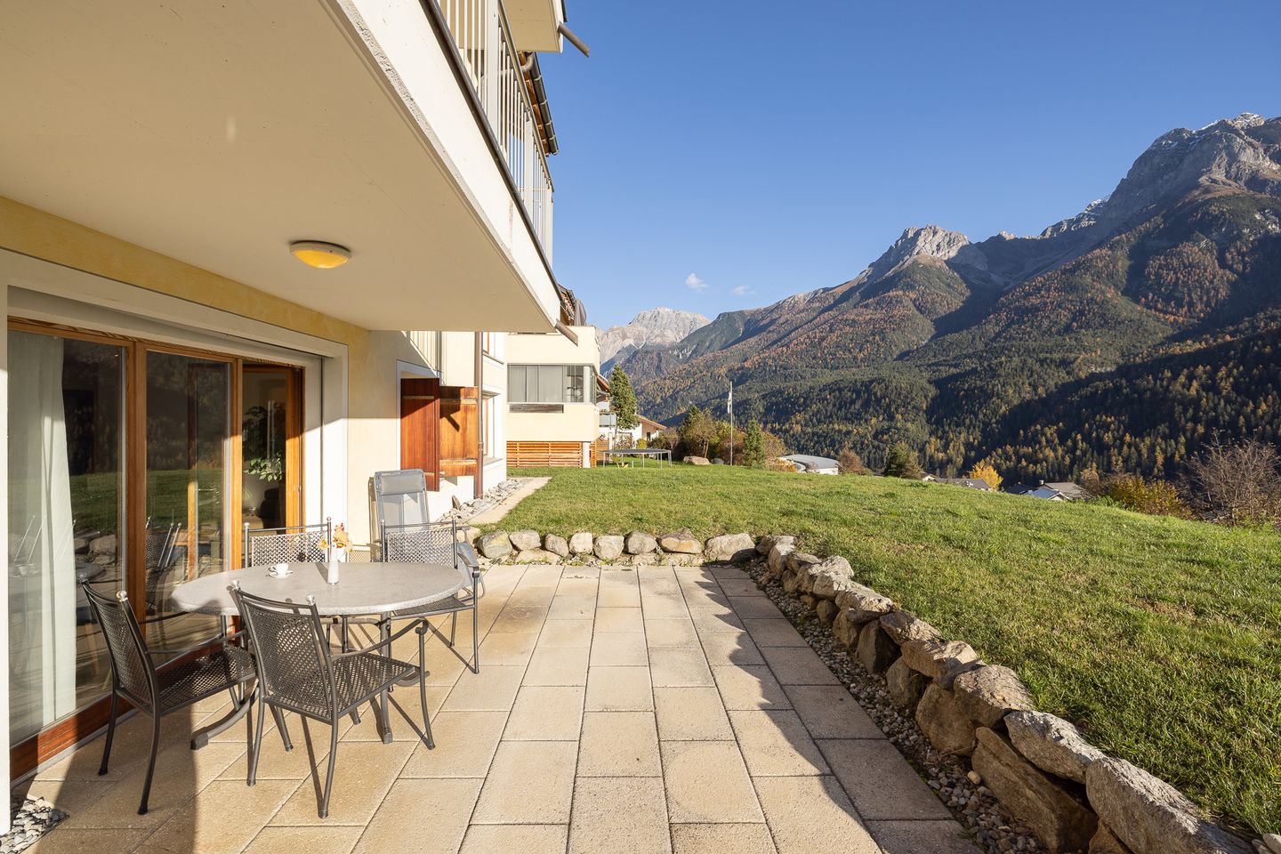Hier erwartet Sie eine moderne 3 1/2-Zimmerwohnung mit grossem Südwestgartensitzplatz. Vom Sitzplatz aus können Sie das tolle Panorama auf die Unterengadiner Bergwelt bestaunen. Die Ferienwohnung befindet sich oberhalb der Umfahrungsstrasse von Scuol. Nur ca. 10 Gehminuten ins Zentrum und wenige Schritte von der Haltestelle des Orts - & Skibusses entfernt.