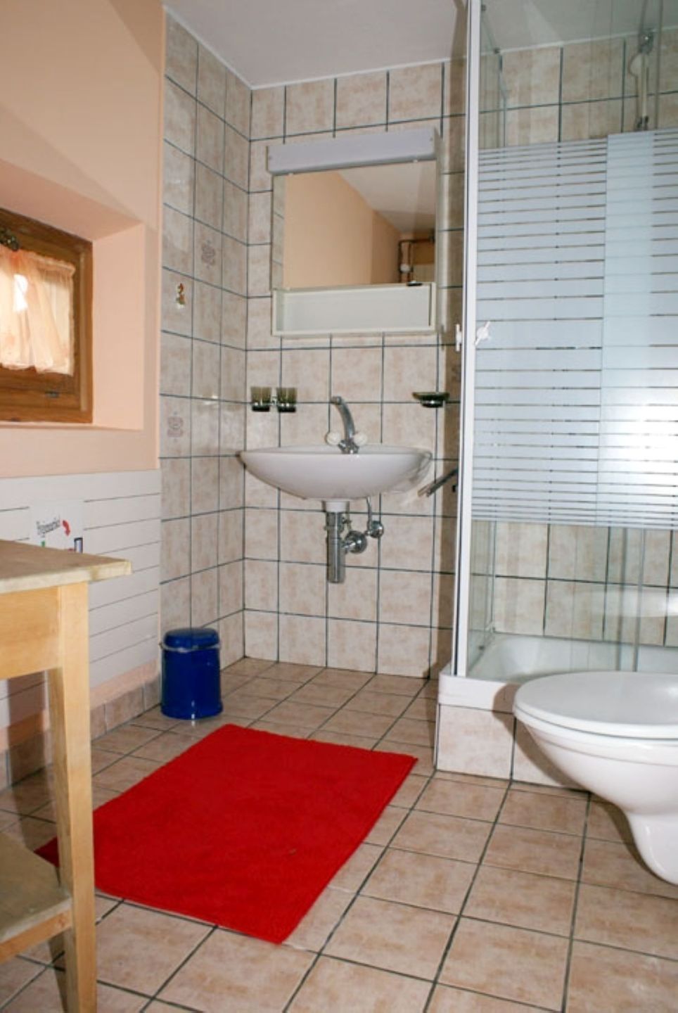 Untergeschoss (über kleine steile Treppe von der Wohnstube aus erreichbar): Dusche/WC/Lavabo.