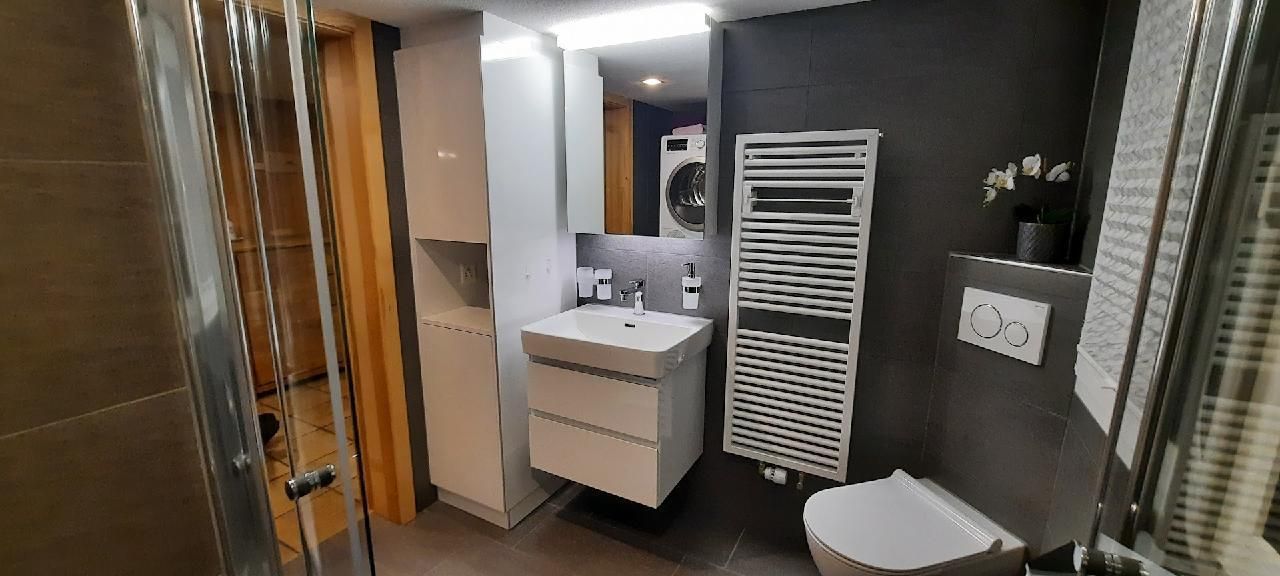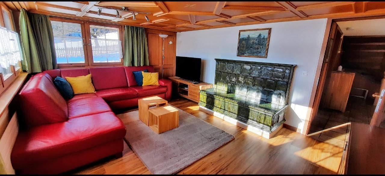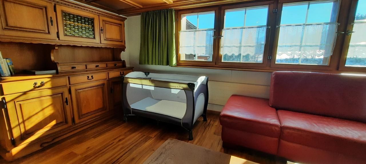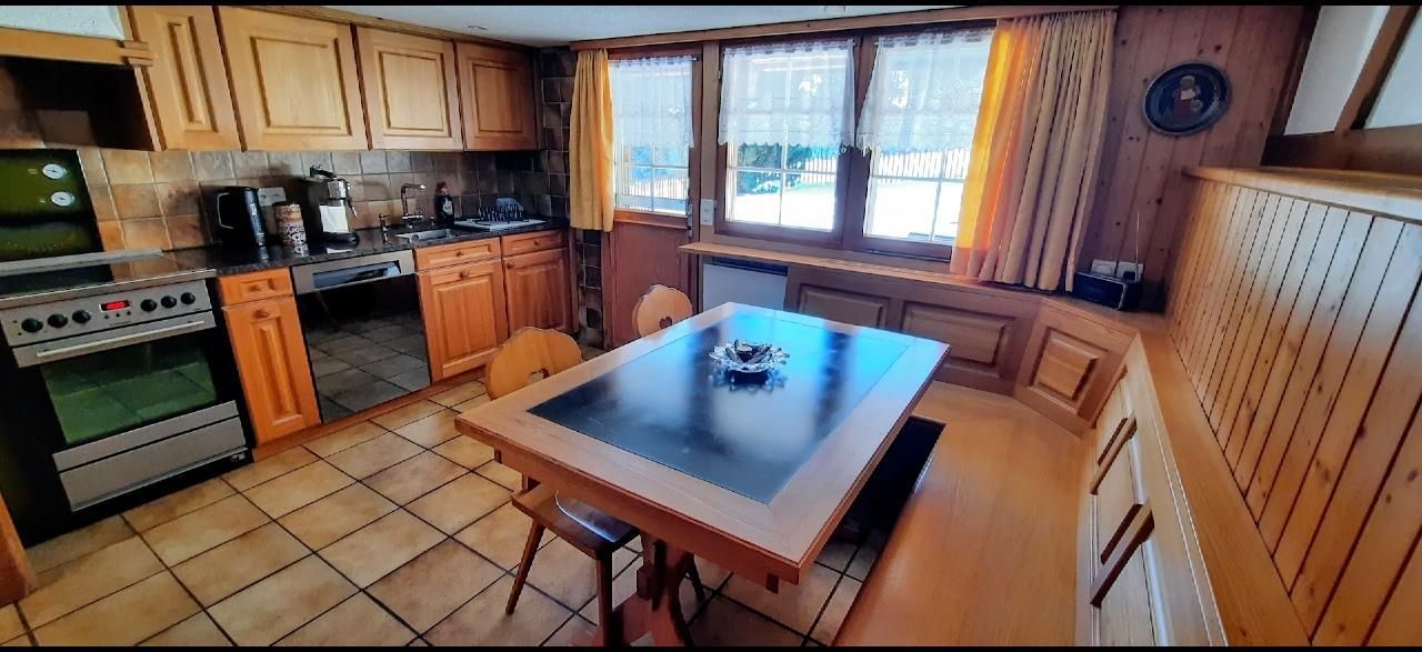 Die gemütliche und geräumige 2 1/2 Zimmer Ferienwohnung verfügt über eine Wohnküche mit Esstisch und Eckbank, ein Wohnzimmer mit grossem Fernseher (Swisscom-TV) und einem Bettsofa für zwei Personen. Das Schlafzimmer hat ein Boxspringbett. Das moderne, neu renovierte Badezimmer mit Bodenheizung verfügt über eine grosse Dusche, eine Waschmaschine mit Tumbler. Der grosse Sitzplatz mit Garten lädt zum Verweilen ein. Beheizt wird die komplett eingerichtete Wohnung mit einer Erdwärme-Heizung und der Strom kommt von der eigenen Photovoltaikanlage. Strom, Wasser, WLAN, eigener Parkplatz, Bettwäsche, Bade- und Handtücher sind im Preis inbegriffen.