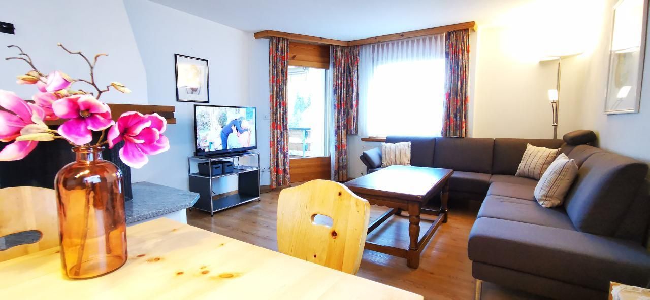 Innen besticht unsere Ferienwohnung durch eine hochwertige Ausstattung, die keine Wünsche offenlässt. Neben einer neuen, voll ausgestatteten Küche erwarten Sie ein stilvolles Bad mit WC sowie eine separate Dusche mit zusätzlichem WC. Für gemütliche Abendstunden bietet das Wohnzimmer mit Cheminée, TV und bequemer Polstergruppe inklusive WLAN Internet den idealen Rahmen.