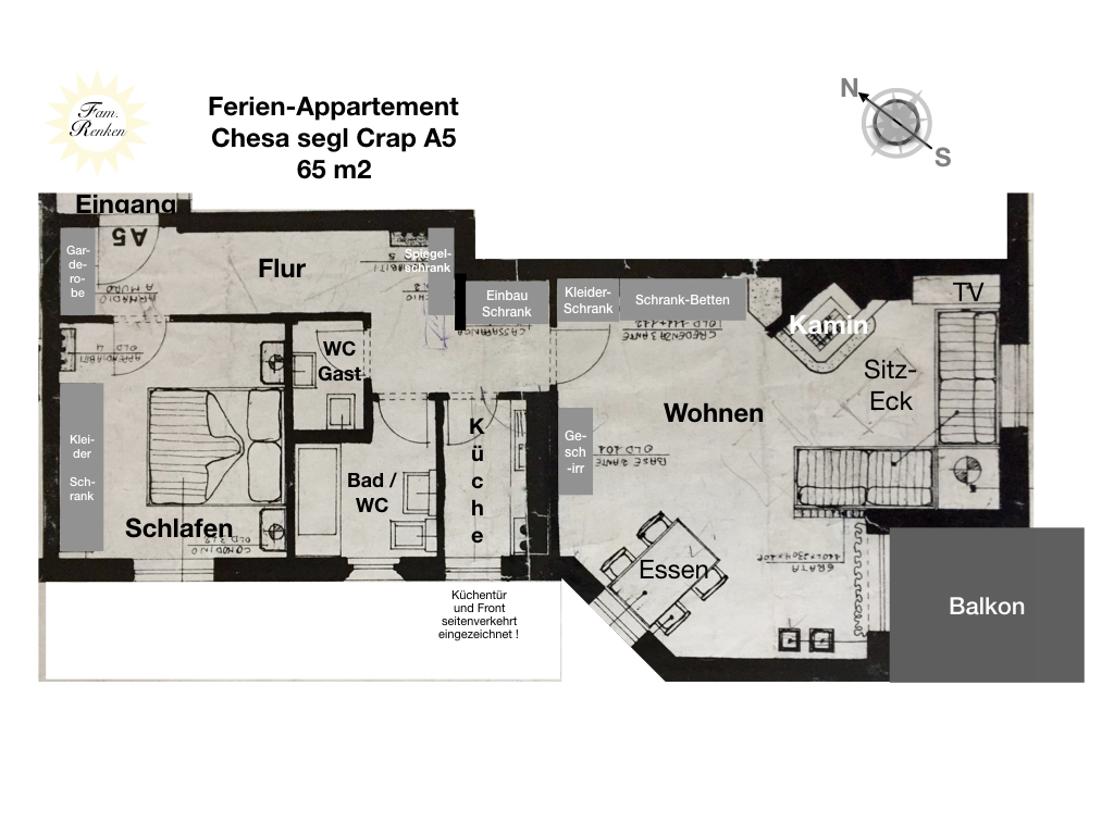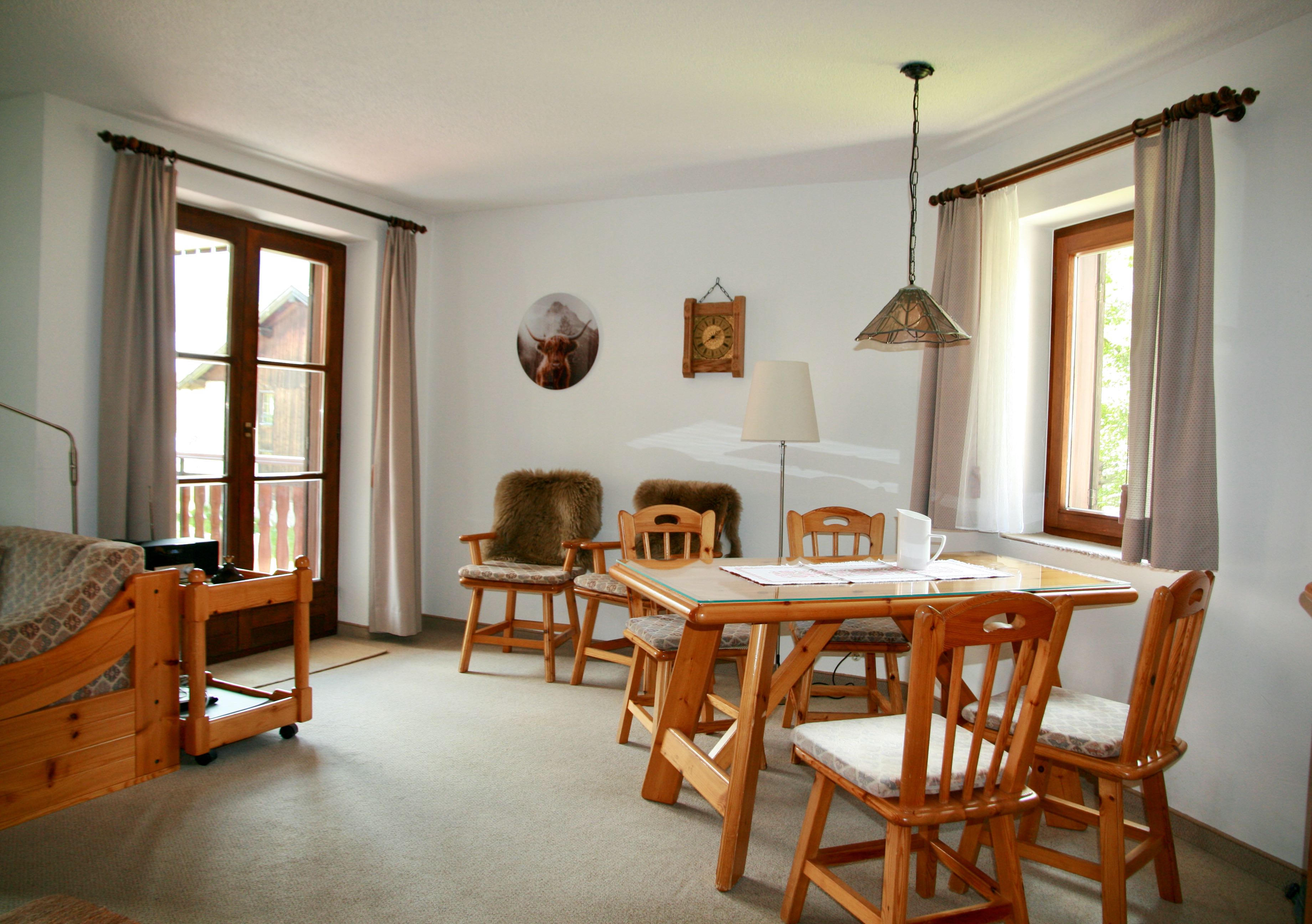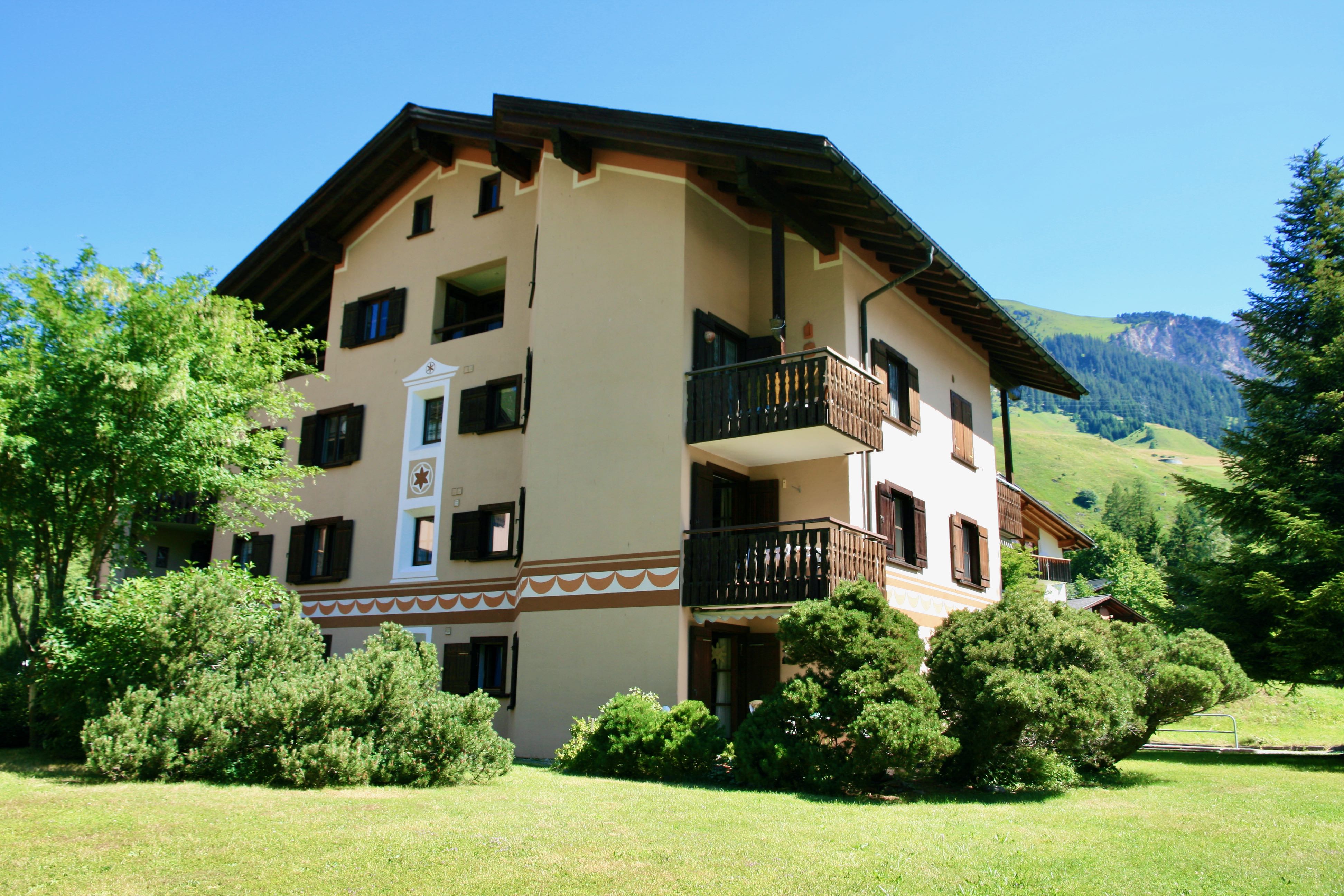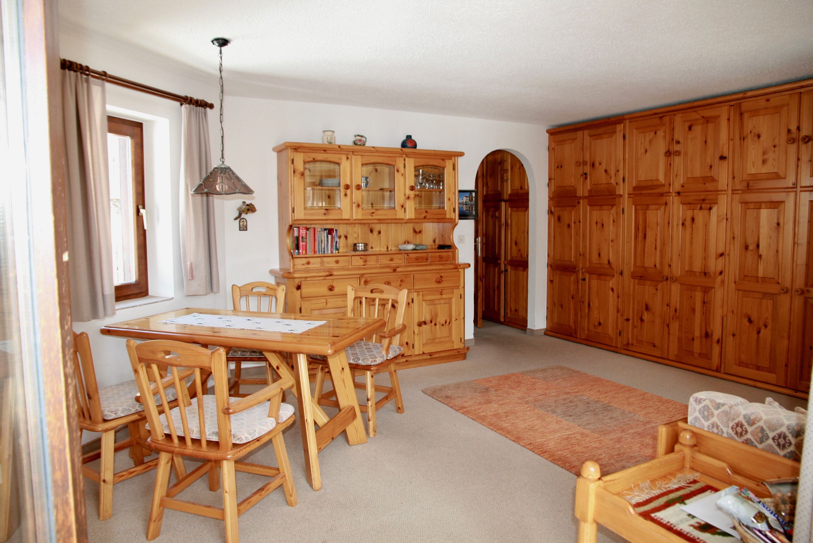 Hell, ruhig und nur 2 Gehminuten vom Dorfkern entfernt liegt diese gut ausgestatte 65m2 Ferienwohnung mit schönem Süd-Balkon im 1. Obergeschoss dieses attraktiven und freistehenden Objektes. Genießen sie den herrlichen Ausblick auf die umliegenden Berge. Der Aussengrillplatz mit Sitzgelegenheit kann gratis benutzt werden. Sollten sie mit dem eigenen Fahrzeug anreisen, steht ihnen der zur Wohnung gehörenden Garagen-Parkplatz kostenfrei zur Verfügung; - insbesondere im Winter ein eisfreier Mehrwert.