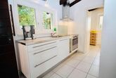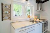 Beim Betreten der Wohnung erwartet Sie eine modern eingerichtete Küche mit allem erdenklichen Komfort, darunter ein Glaskeramikkochfeld, Backofen, Kühlschrank mit Tiefgefrierfach und sogar eine Nespresso-Maschine. Das helle Wohnzimmer mit bequemem Leder-Sofa, Relaxsessel und einem runden Glastisch lädt zum Verweilen ein, während Sie über das Panoramafenster mit Insektenplissee und die seitlichen Fenster das Sonnenlicht genießen können. Hier sind Komfort und Funktionalität perfekt vereint.