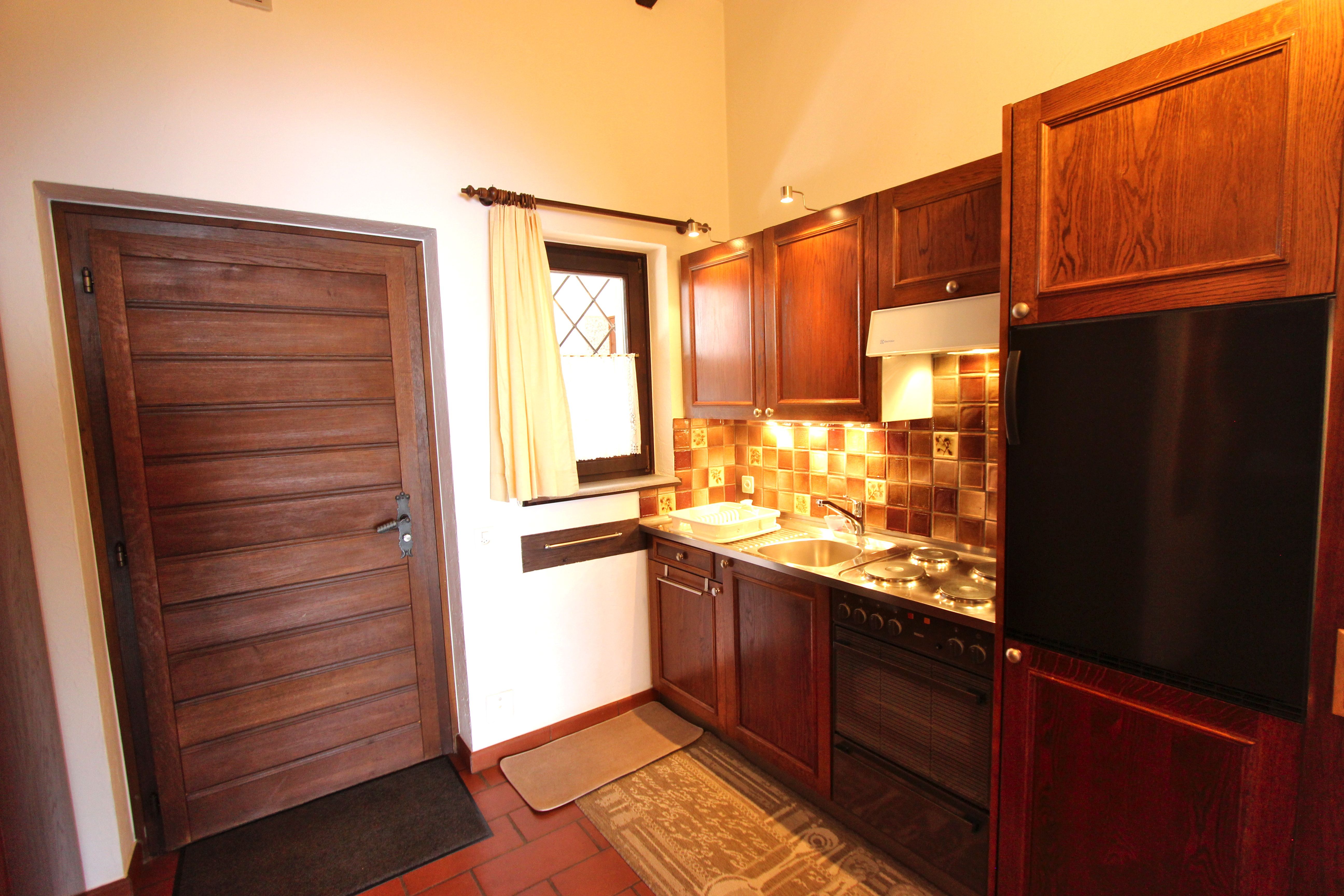 Voll ausgestattete Küche mit Backofen, Wasserkocher, Standmixer und Nespresso-Kafeemaschine.