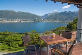 Vom Balkon aus tolle Sicht auf den Lago Maggiore und das gegenüberliegende Ufer mit Ascona und Locarno und den umliegenden Bergen.