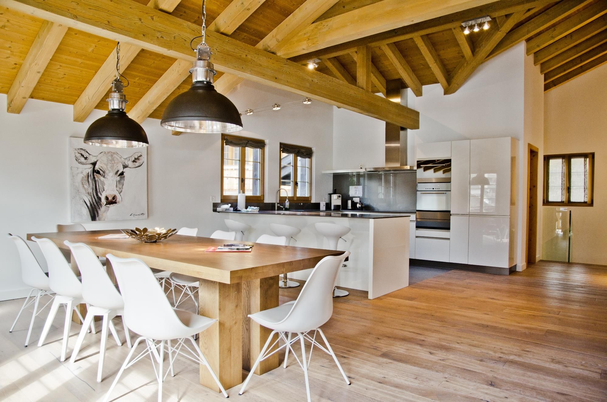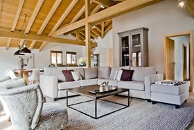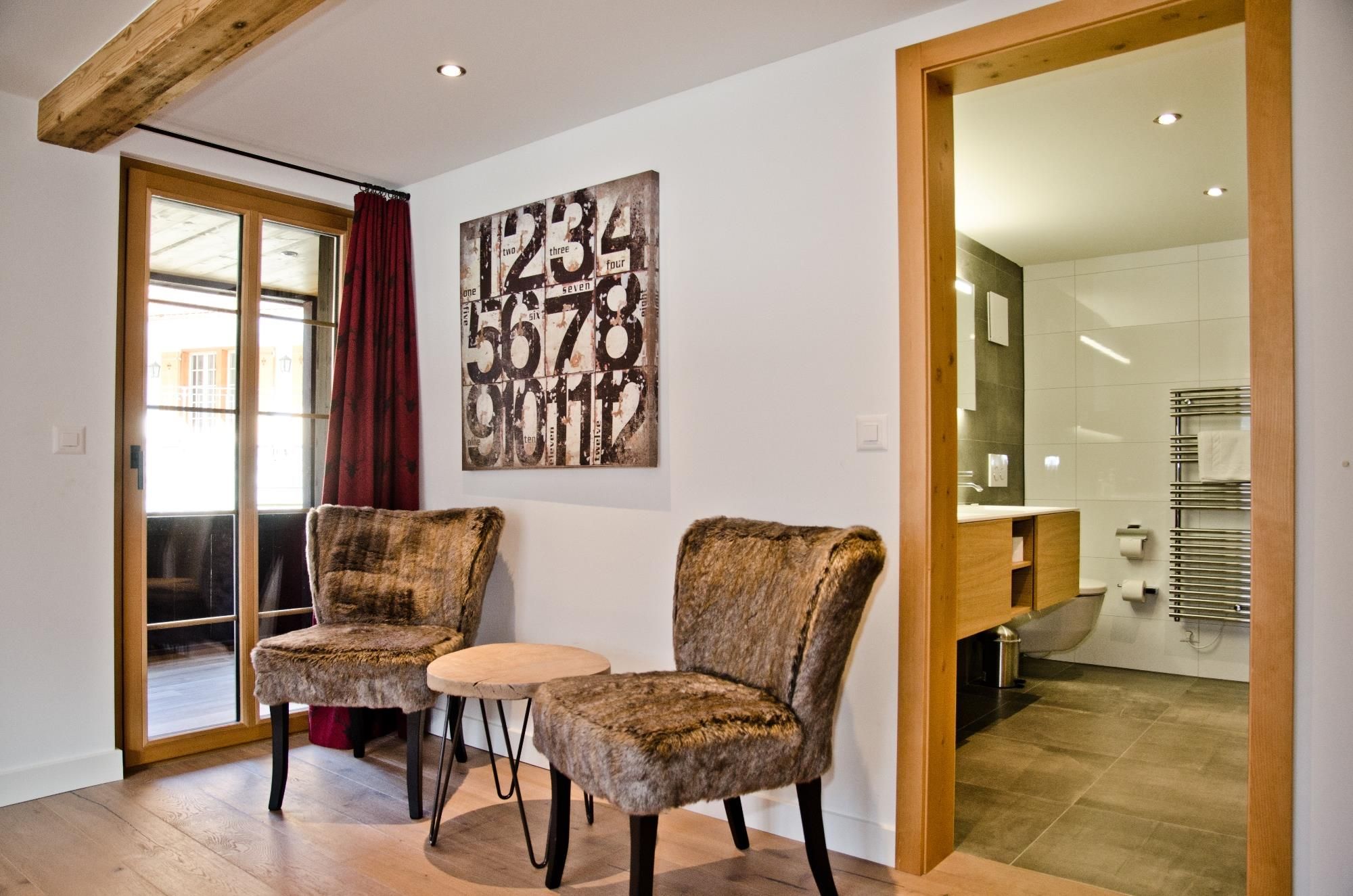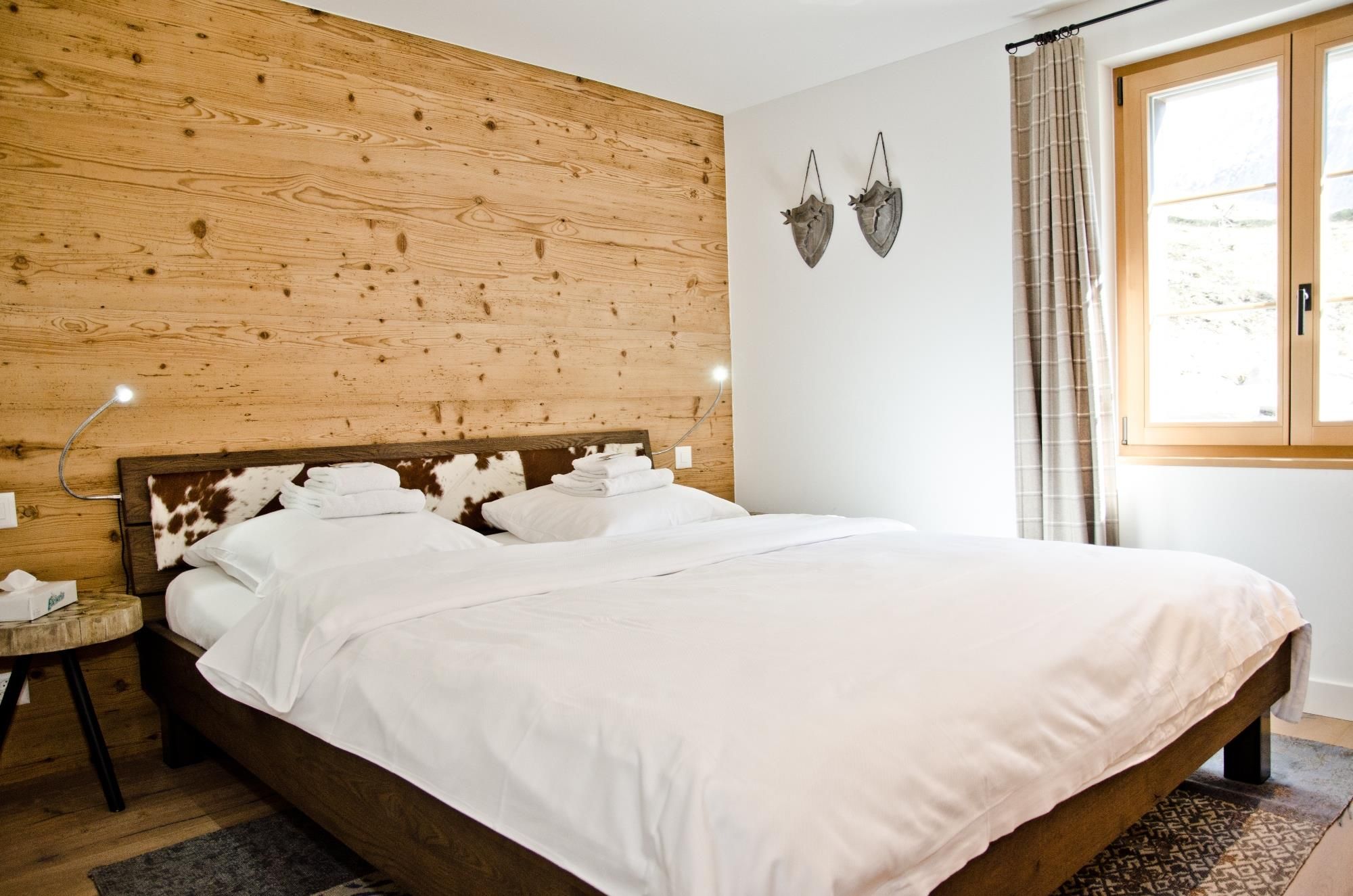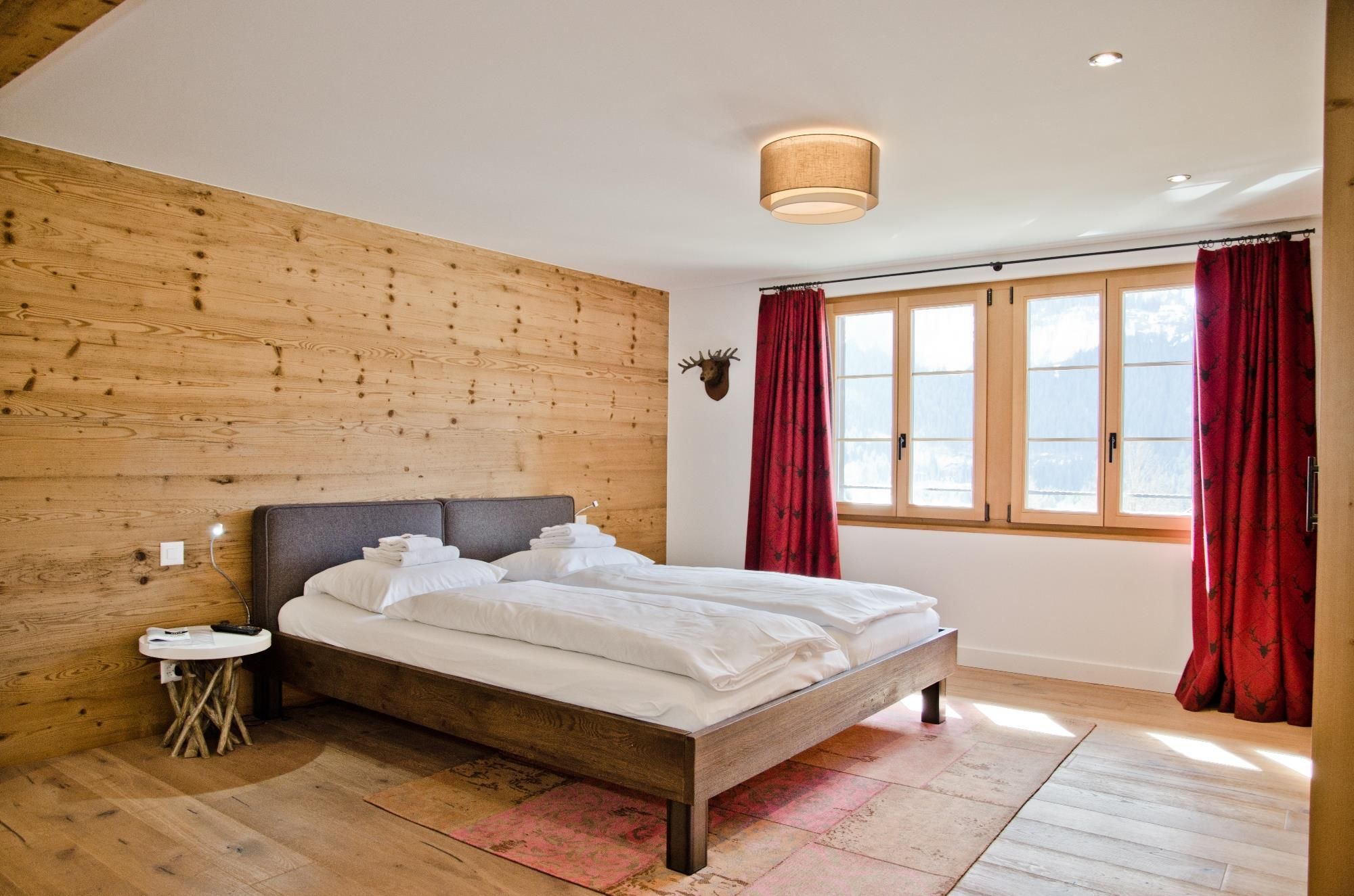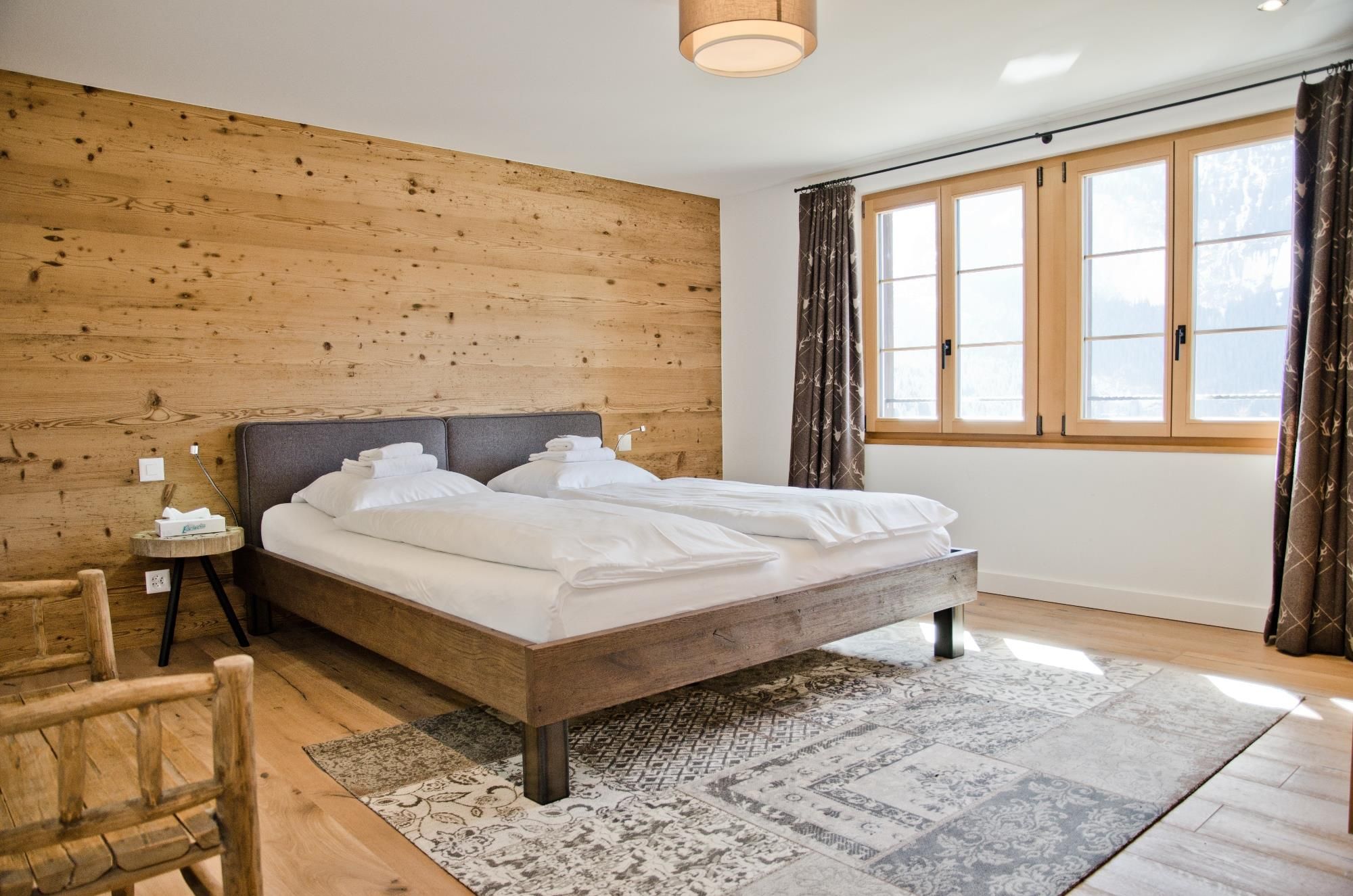 Die luxuriöse 5.5-Zimmerwohnung befindet sich auf zwei Etagen und bietet vier Schlafzimmer mit Doppelbett, drei Badezimmer mit Badewanne, Dusche und WC sowie ein separates WC. Die 200m2 grosse Wohnung hat eine offene, moderne Küche die sich zum grosszügigen, gemütlichen Wohn- und Essbereich mit Cheminée öffnet. Der Balkon lädt zu entspannten Stunden ein mit Aussicht auf das einmalige Bergpanorama.
