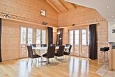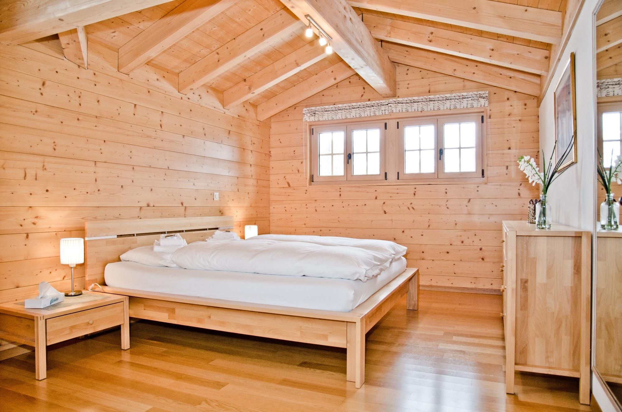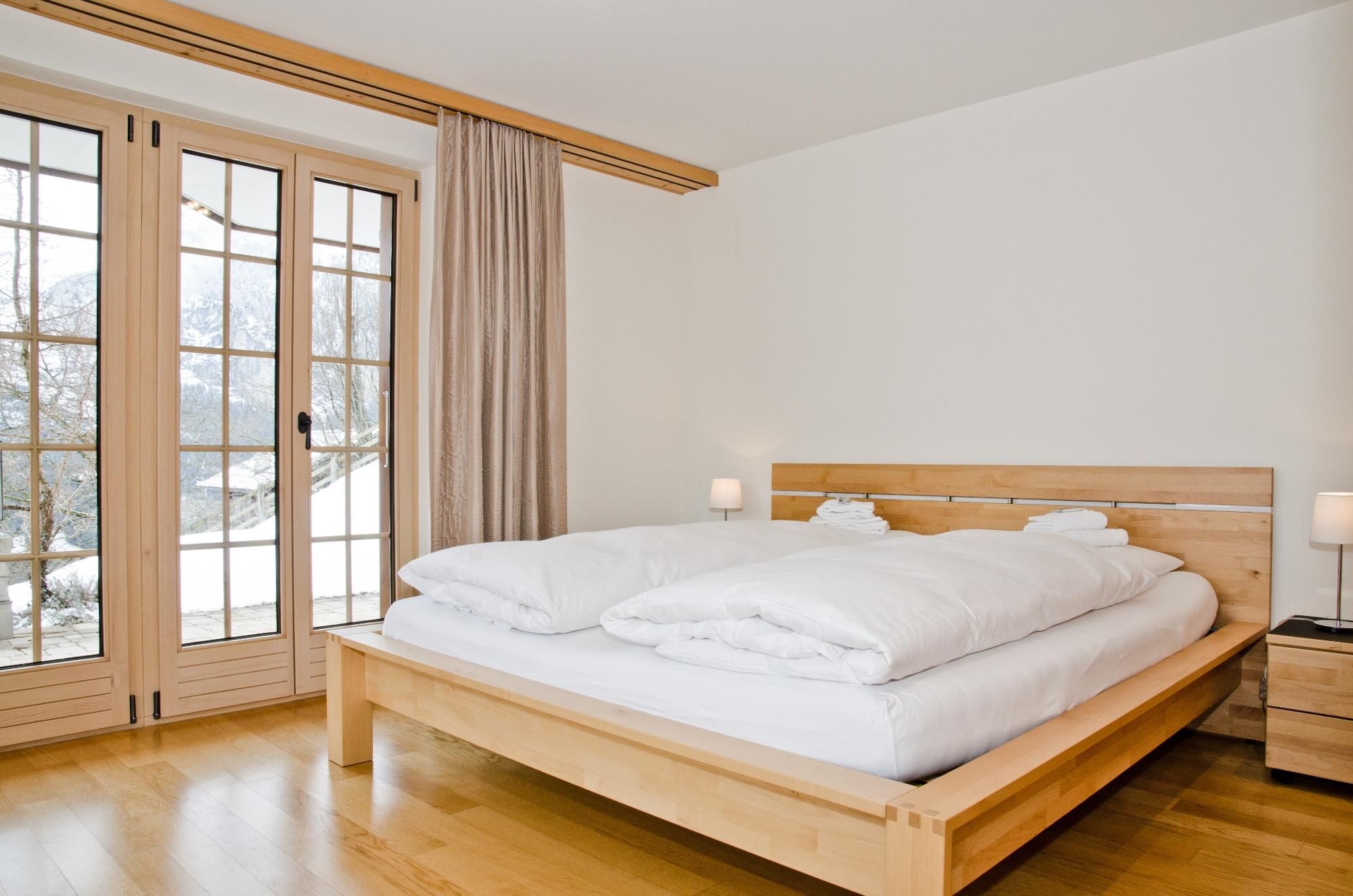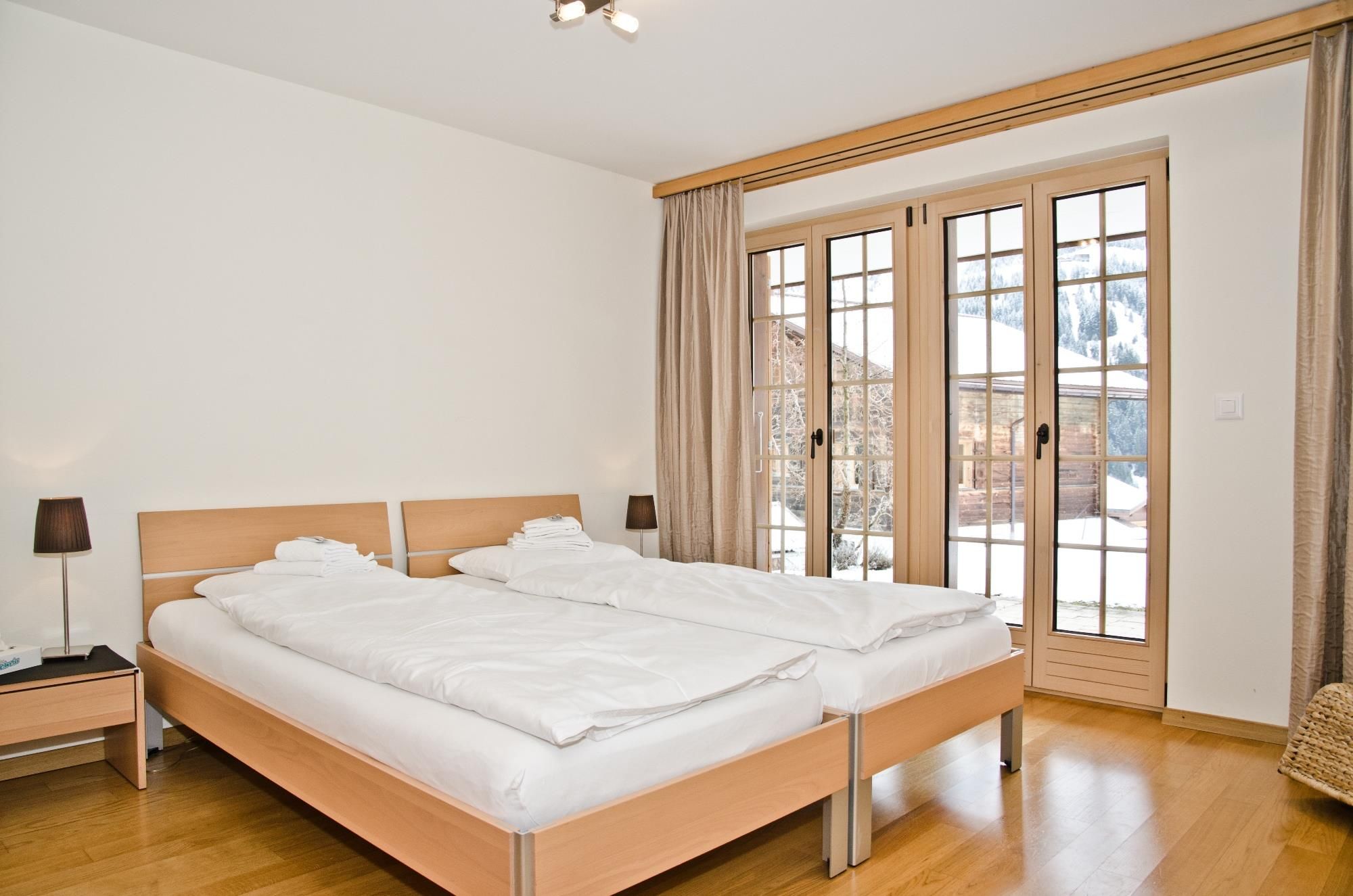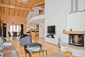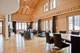 Auf 240m2 Wohnfläche bietet das grosse Chalet alles, was Sie für entspannte Ferien mit Familien und Freunden benötigen: Zwei Schlafzimmer mit Doppelbett, zwei Schlafzimmer mit je zwei Einzelbetten, drei Badezimmer mit Badewanne und WC, eine separate Dusche sowie zwei separate WC. Die moderne Küche öffnet sich zum hellen Wohn- und Essbereich mit Cheminée. Von der Terrasse und vom Balkon aus geniessen Sie einmalige Aussichten auf das Bergpanorama.