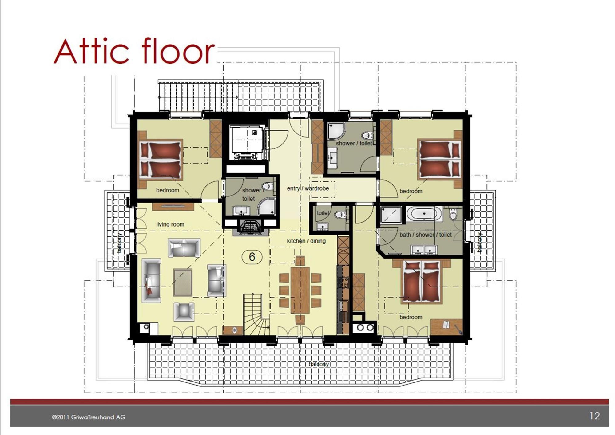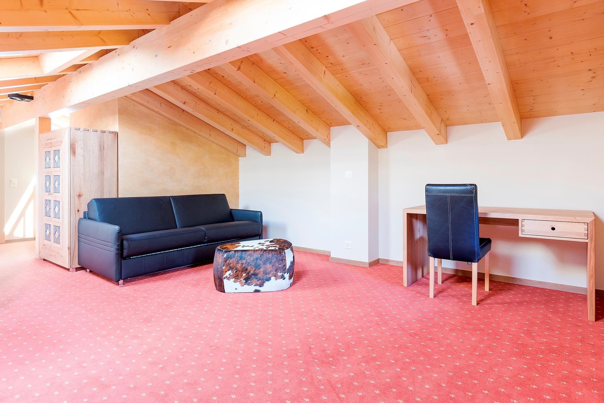 Entspannte Ferien mit Aussichten auf die umliegende Bergwelt erleben Sie in dieser grosszügig geschnittenen 4.5-Zimmer Dachwohnung (175m2) mit Galerie und drei Balkonen. Die Wohnung verfügt über drei Doppelschlafzimmer mit Badezimmer en suite. Auf der Galerie ist Platz für weitere zwei Gäste, inklusive Sofabett und eigenem Badezimmer. Herzstück der modern gestalteten Wohnung ist die offene Küche mit anschliessendem, hellen und gemütlichen Wohn- und Essbereich mit Cheminée.
