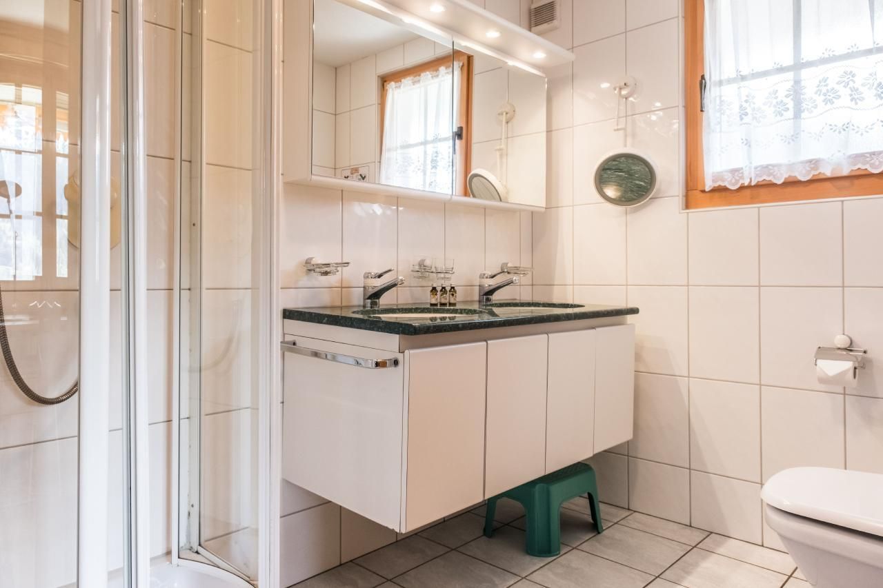Die grosszügige 5-Zimmerwohnung mit 150m2 Wohnfläche bietet zwei Schlafzimmer mit Doppelbett, ein Schlafzimmer mit zwei Einzelbetten, zwei Badezimmer en-suite mit Dusche und WC, ein Badezimmer en-suite mit Badewanne, Dusche und WC sowie ein separates WC. Die gut ausgestattete Küche öffnet sich zum komfortablen Wohn- und Essbereich mit Cheminée. Die grosse, die Terrasse bietet eine wunderschöne Aussicht auf das Bergpanorama.